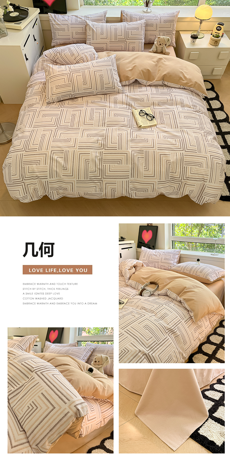 当前位置: 91家纺网 > 商品网购 > 床品套件 > 四件套 > 全棉普通四件套 > 沐辰 2024新款A类全棉磨毛印花四件套--简约类 几何