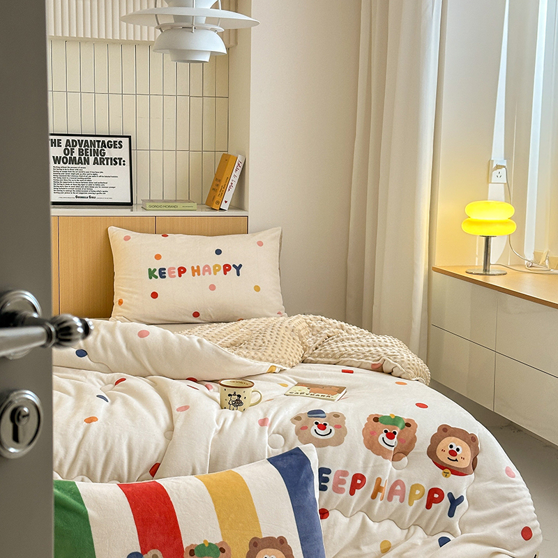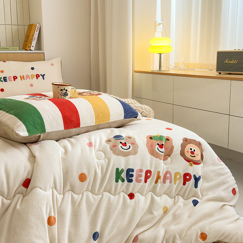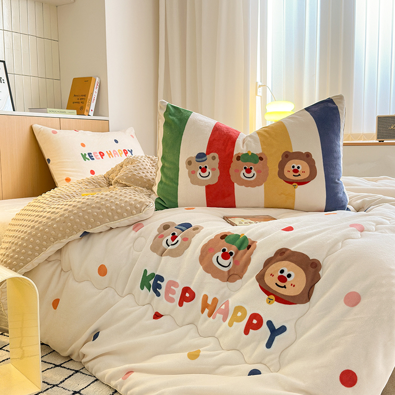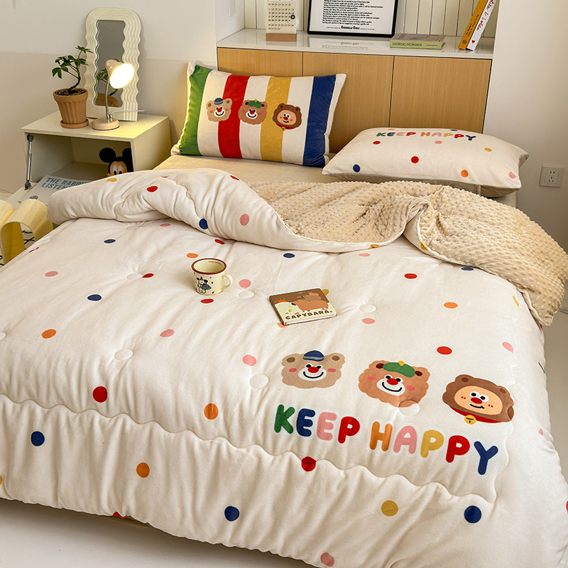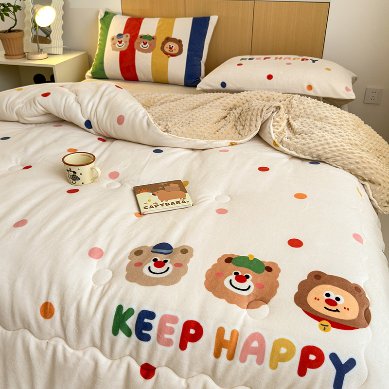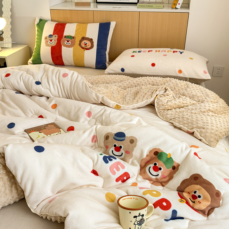 2024新款卡通大版高克重牛奶绒豆豆被四件套 三只熊