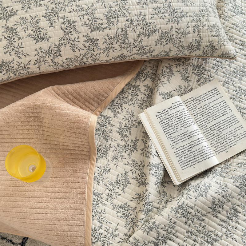 (总)漫调家纺 2025新款全棉双层纱与绒床盖三件套,黛紫缀花,粉雾枝蔓,玫瑰故事,青芜点绯,轻烟凝灰