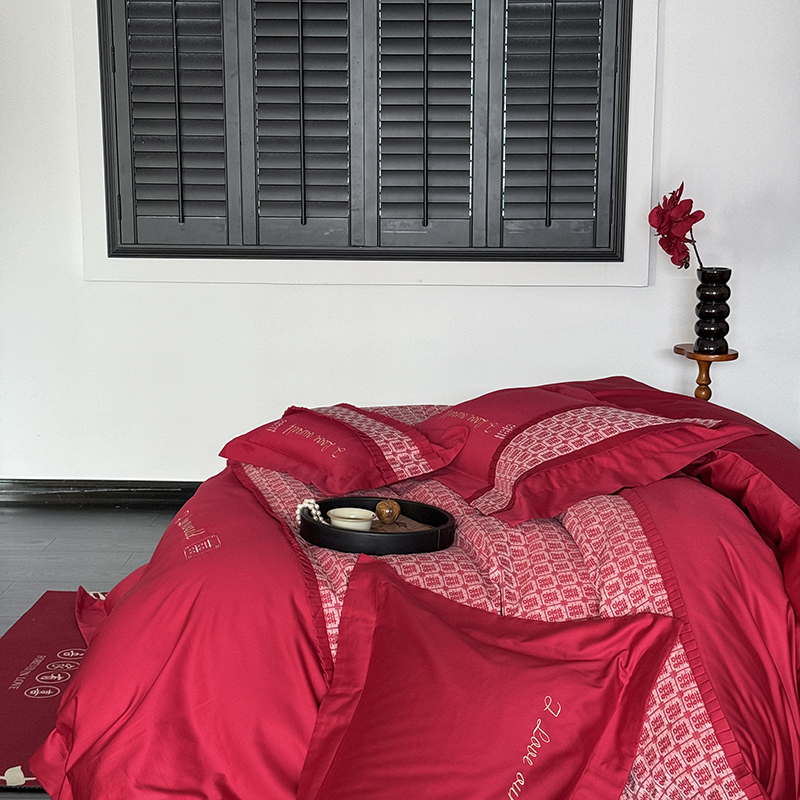 (总)江涞 2025新款高克重牛奶绒刺绣四件套-花月,花月-高级红