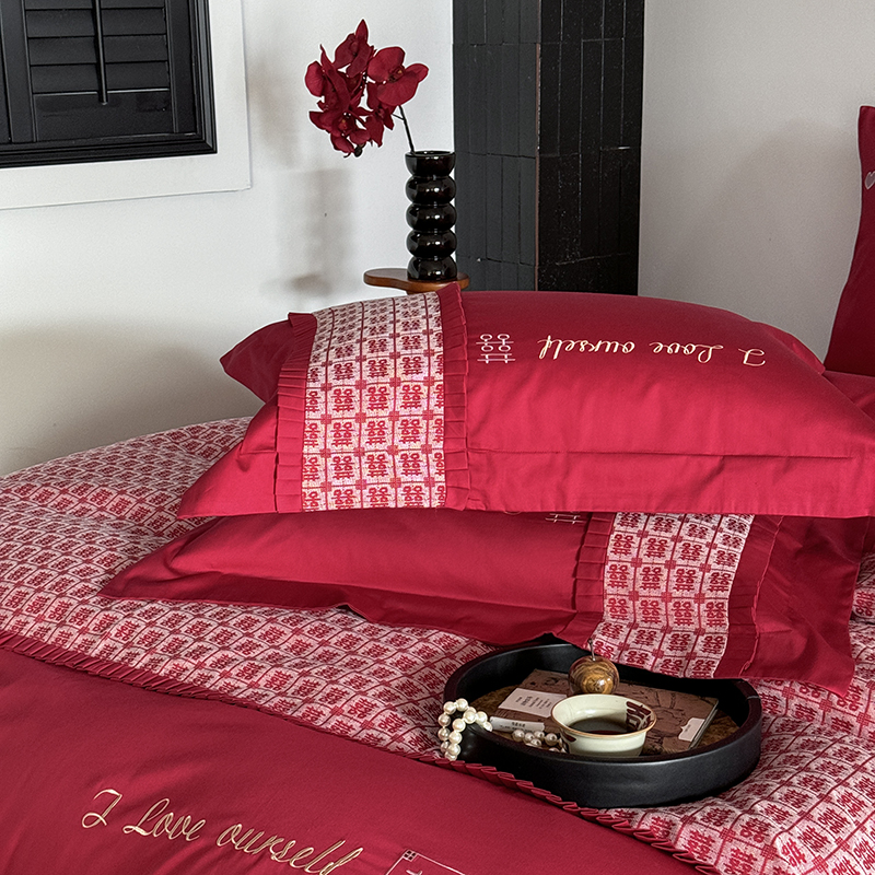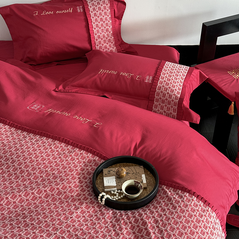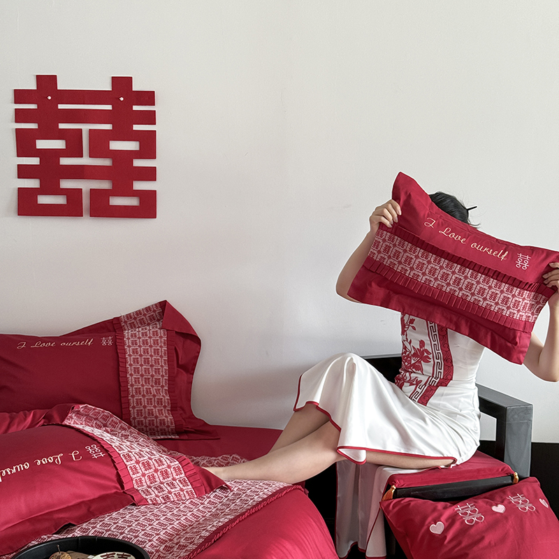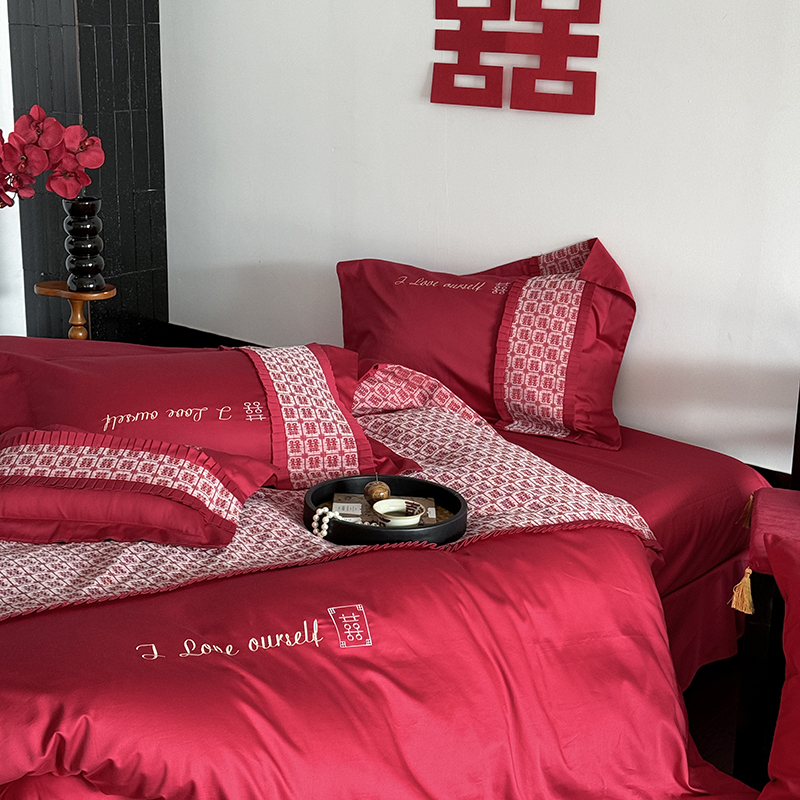 (总)江涞 2026新款100支长绒棉进口高端刺绣可摘卸流苏四件套-迎喜(淘宝券后不低于 418/438),迎喜
