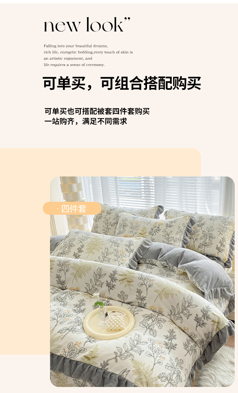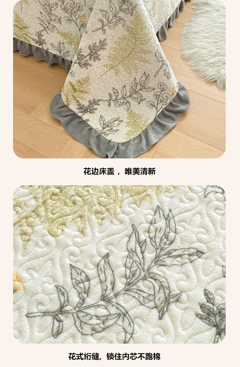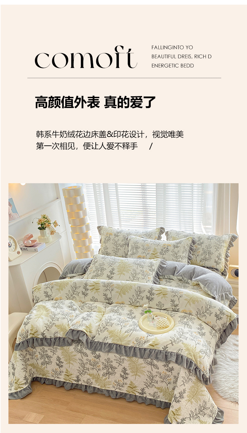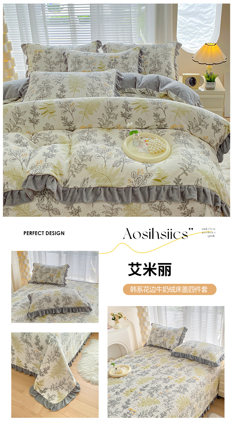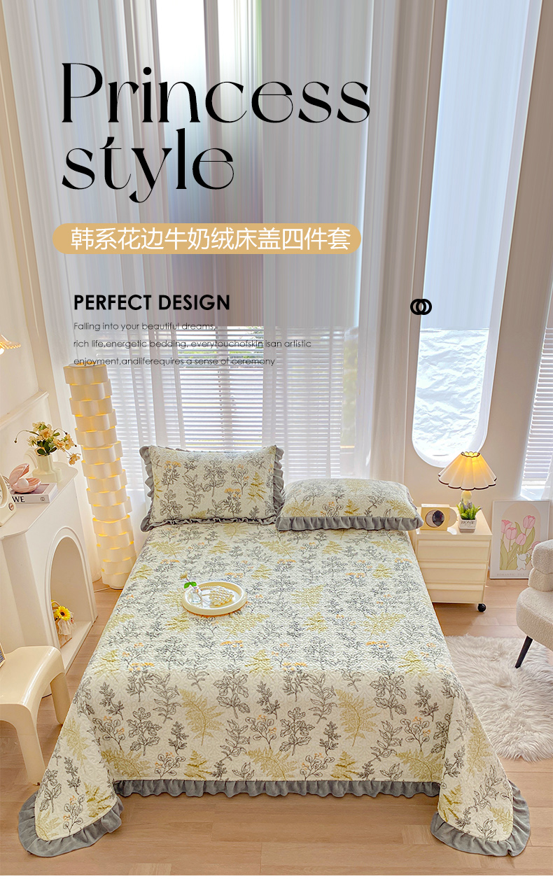当前位置: 91家纺网 > 商品网购 > 床品套件 > 四件套 > 牛奶绒四件套 > 梦精灵家纺 2025新款牛奶绒花边床盖四件套 花边款-艾米丽