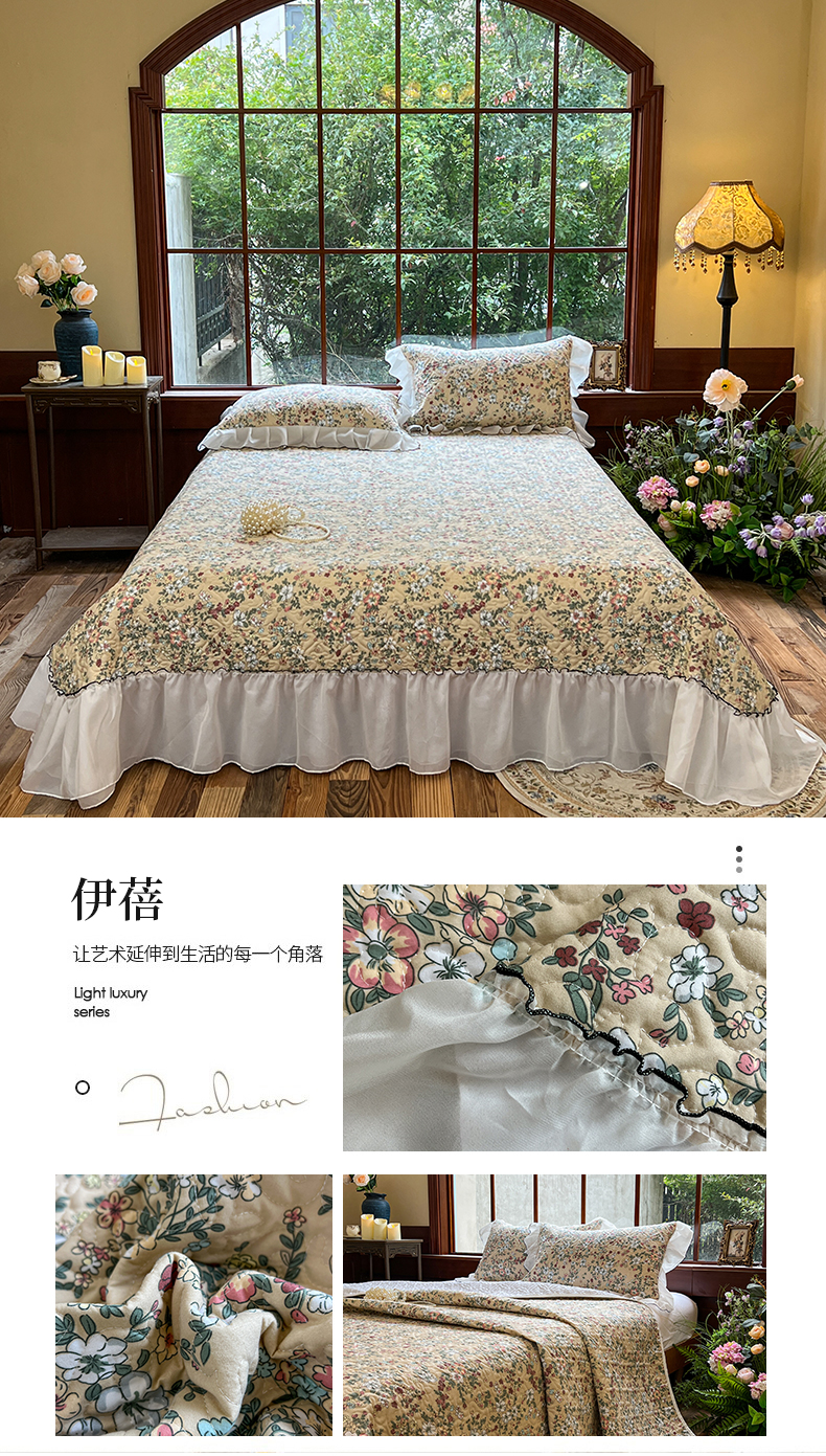 易辰美 2024新款亲肤舒适印花夹棉床盖床裙 伊蓓