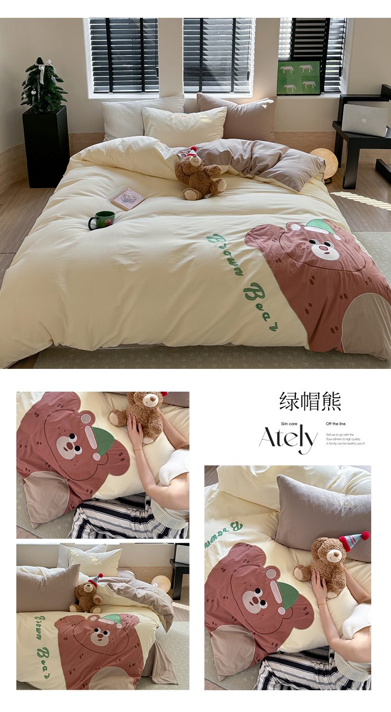 暖生活 2025新款全棉磨毛贴布绣四件套 绿帽熊