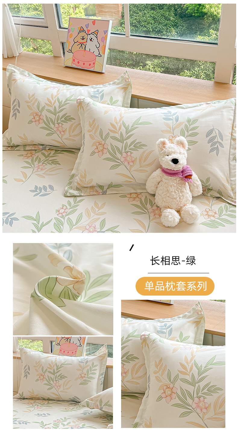 商品名称:铭成家纺 2024新款新疆棉喷气印花小清新系列单品枕套 长相思-绿