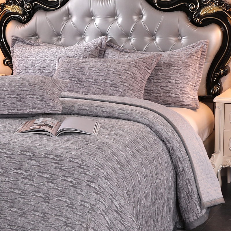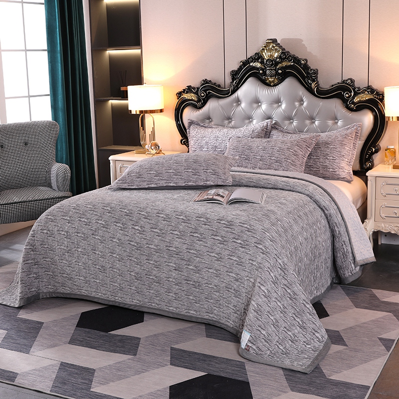 商品名称:悦织湾家纺 2025新款梦幻空间色织牛奶绒床盖轻奢纯色床盖三件套 色织牛奶绒床盖灰