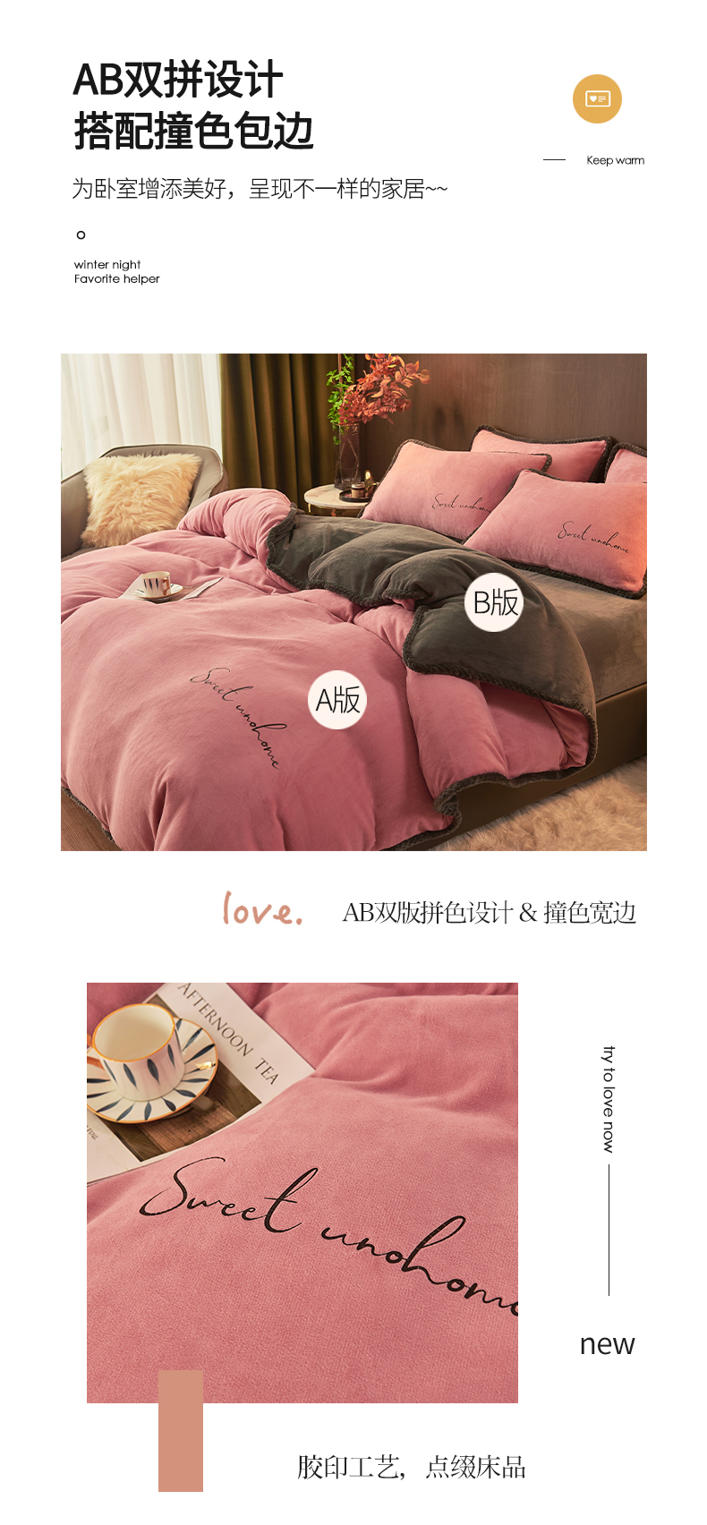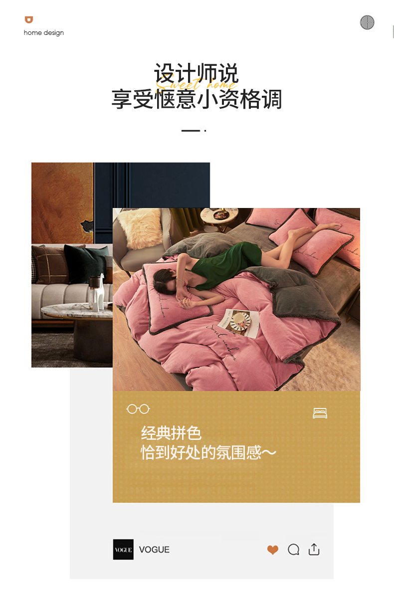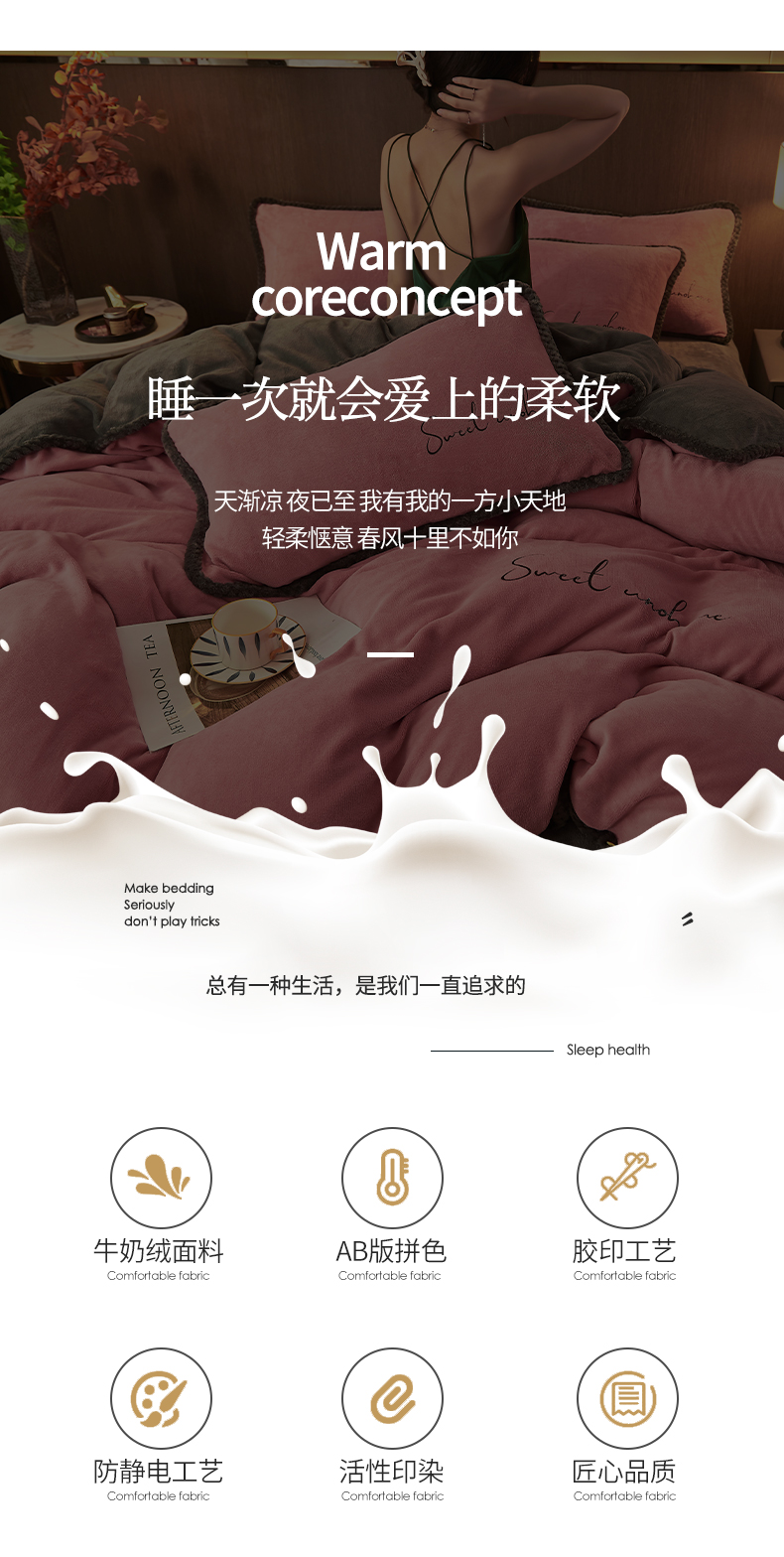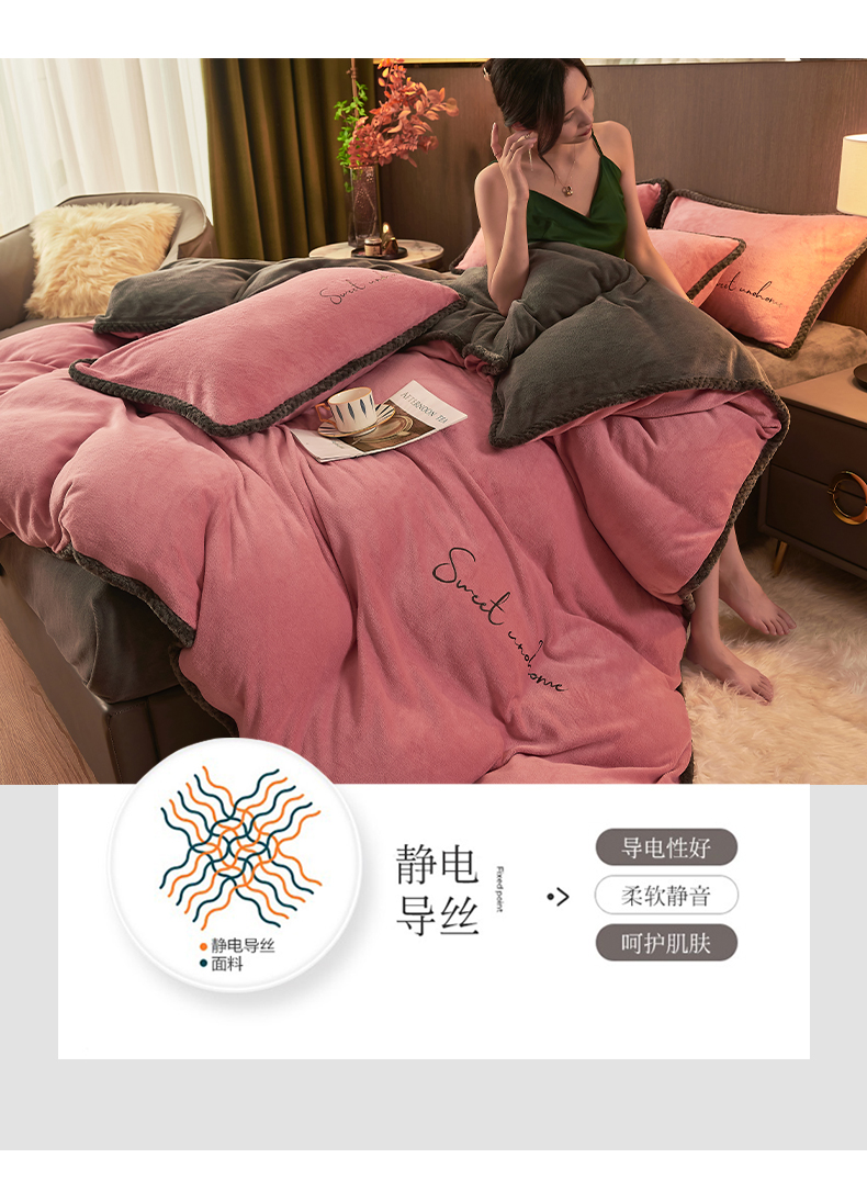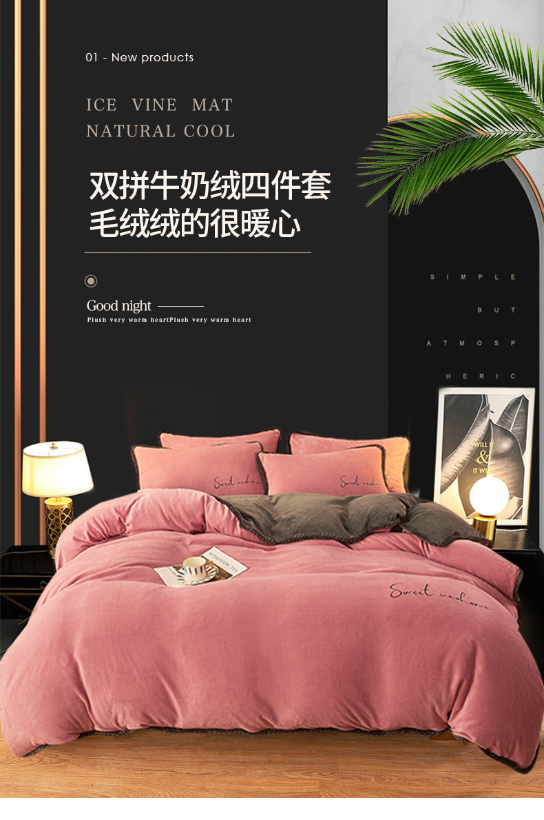 当前位置: 91家纺网 > 商品网购 > 床品套件 > 四件套 > 牛奶绒四件套 > 吾诺 2024新款双拼色牛奶绒四件套 风格一 双拼豆沙