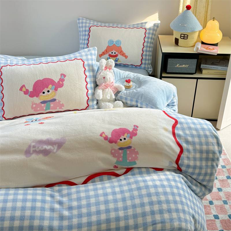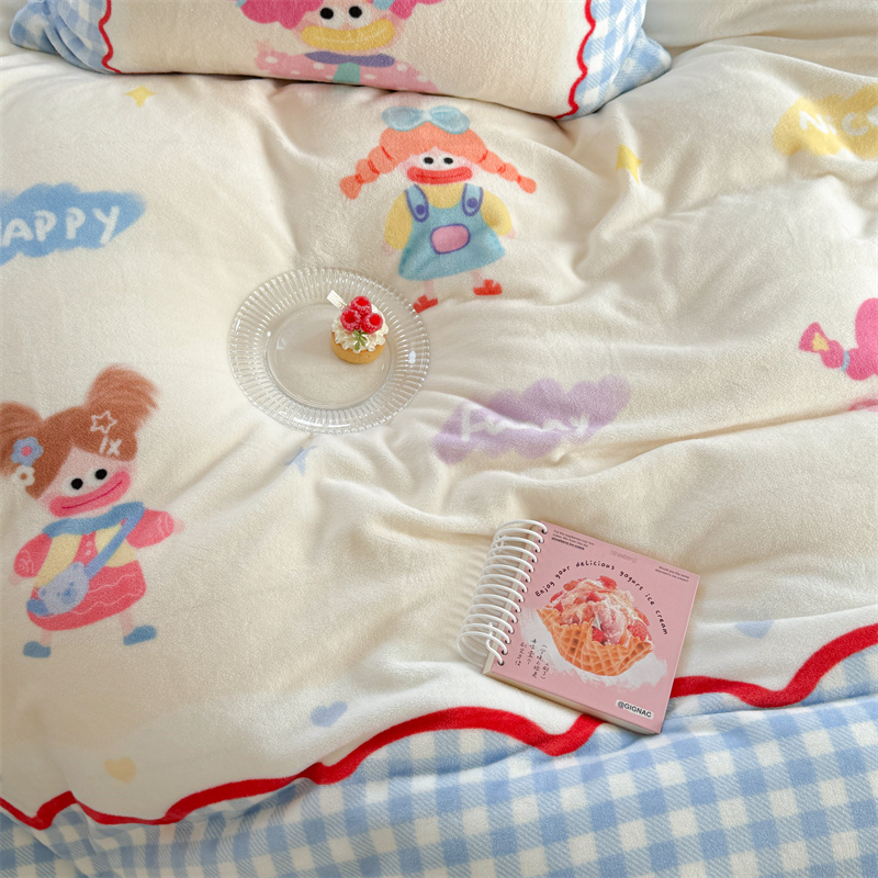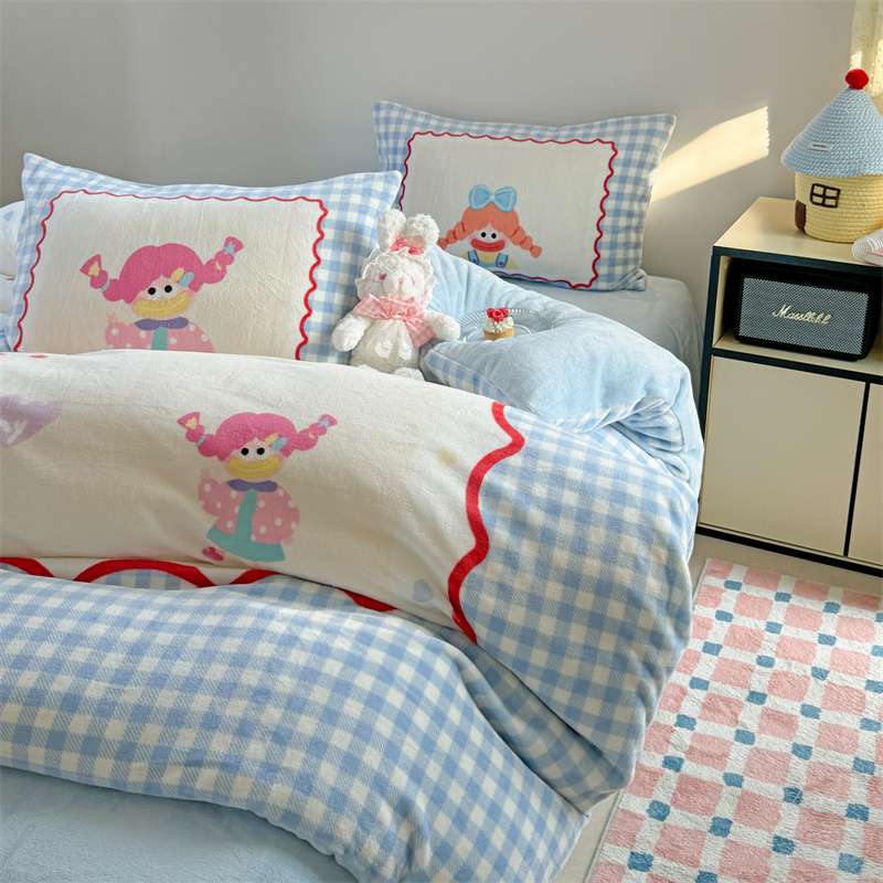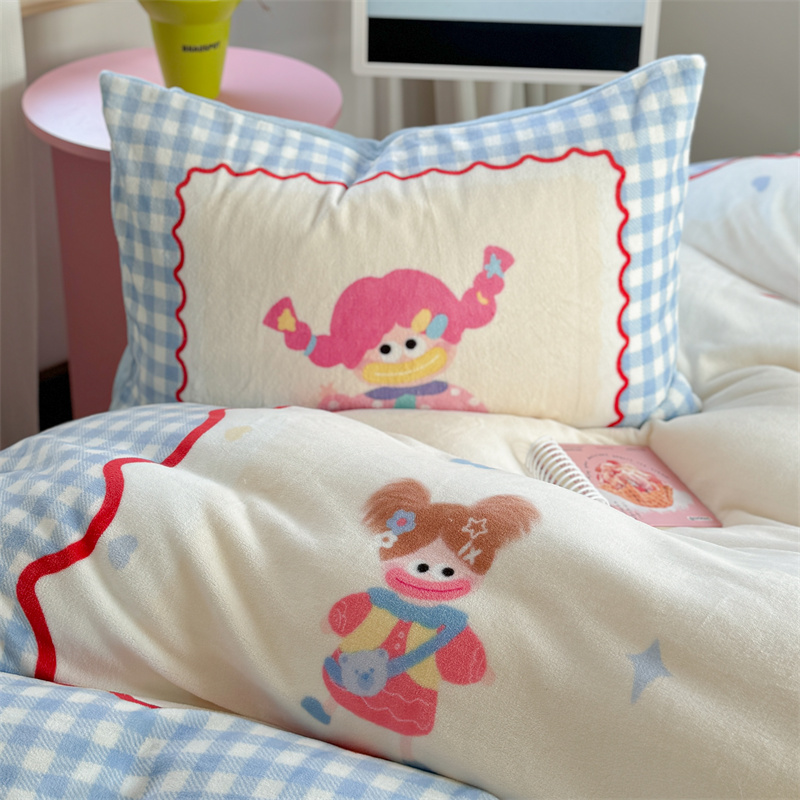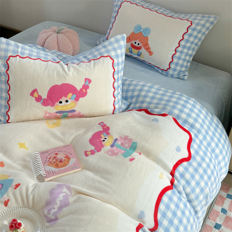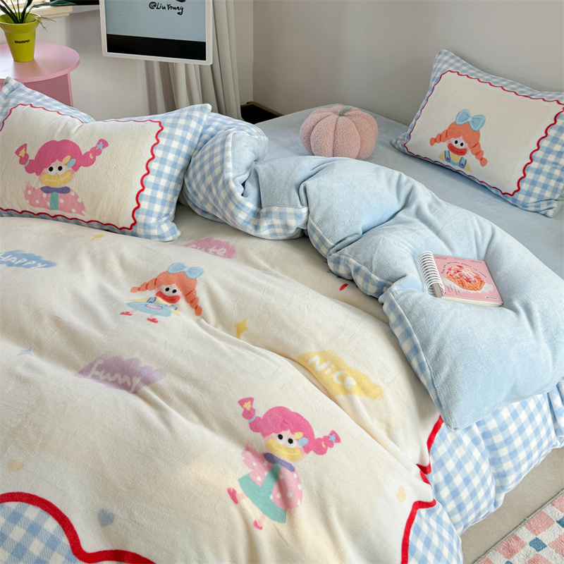 柚子YOUTH 2024新款大版印花牛奶绒四件套 小女孩
