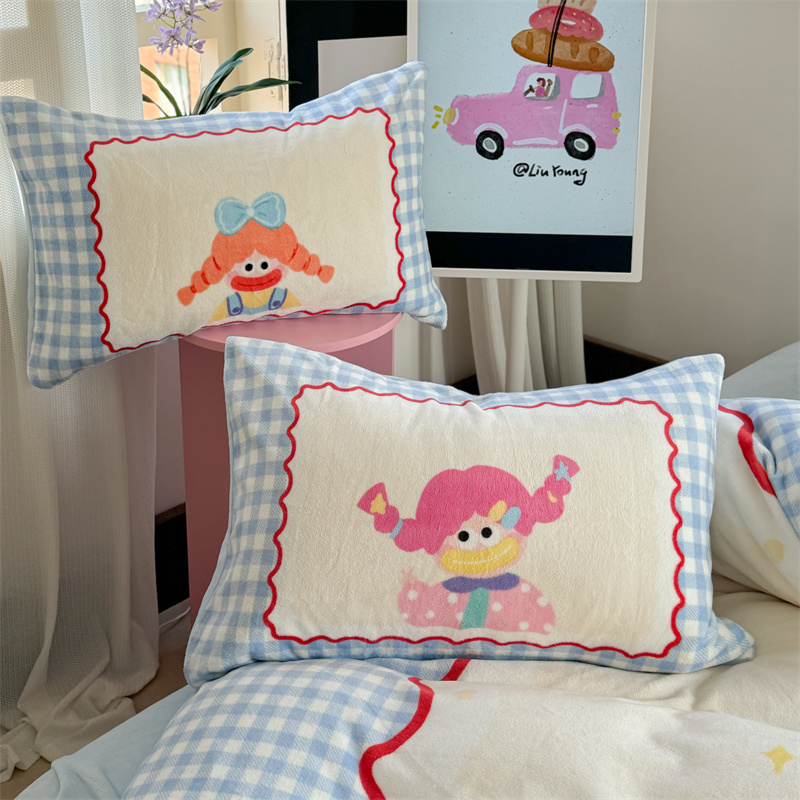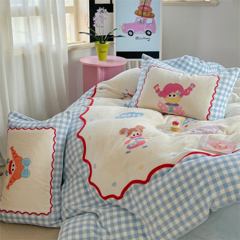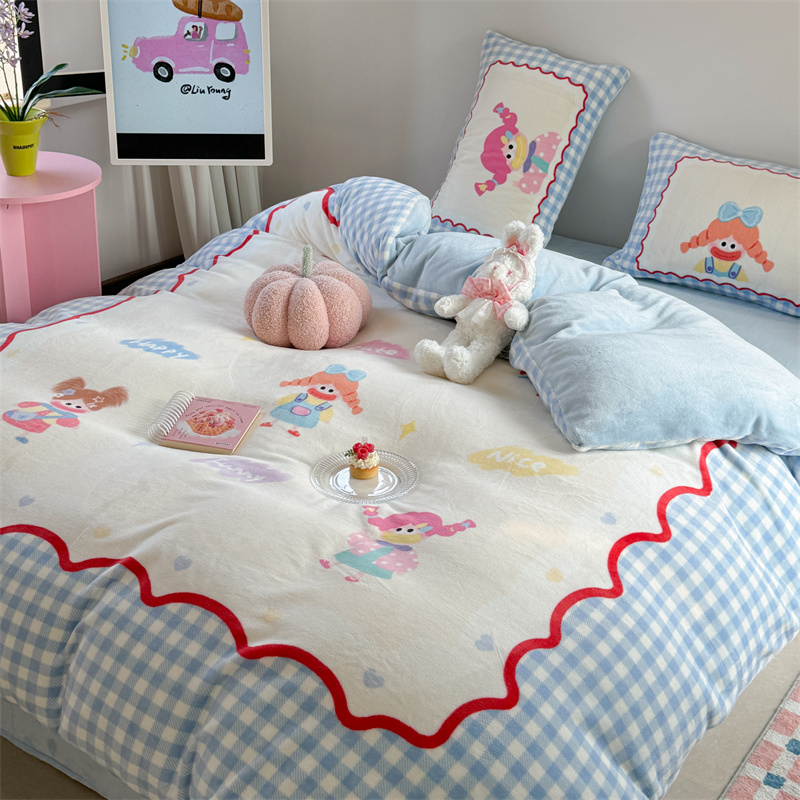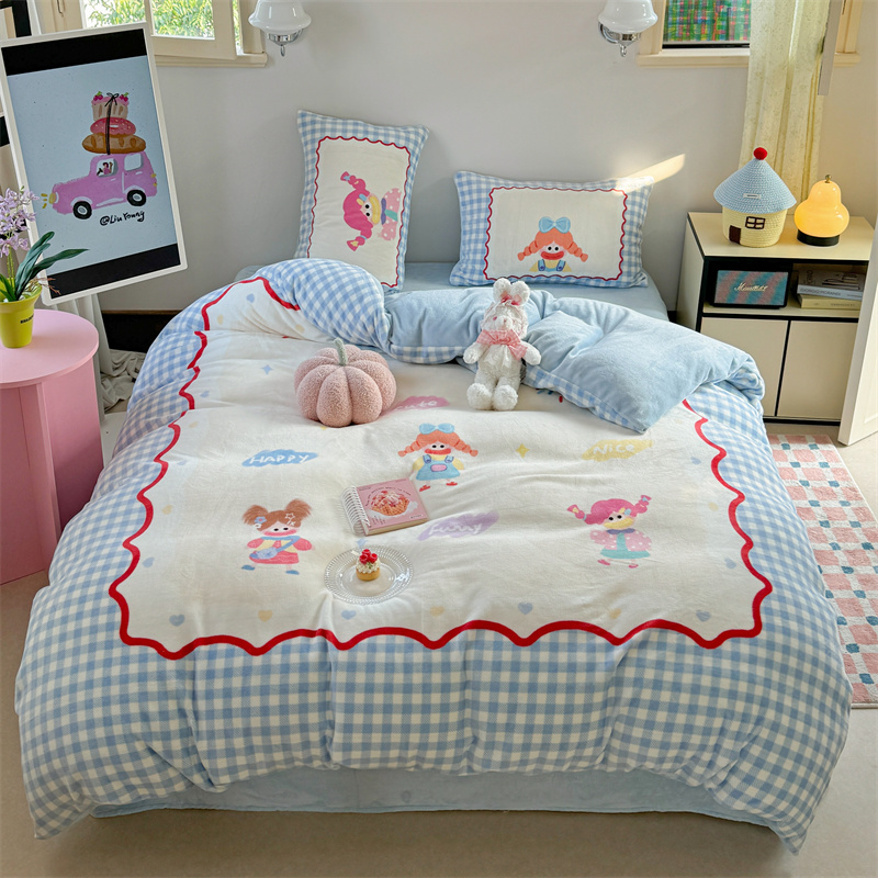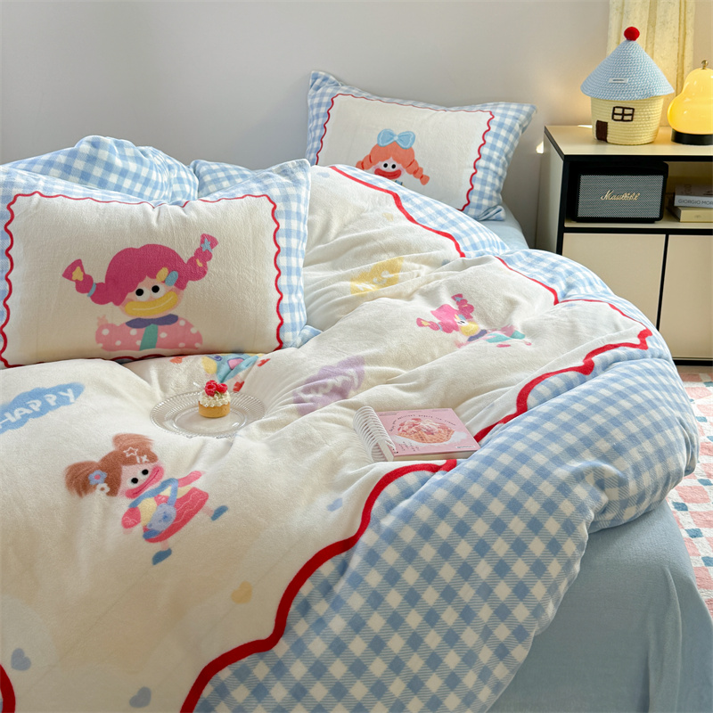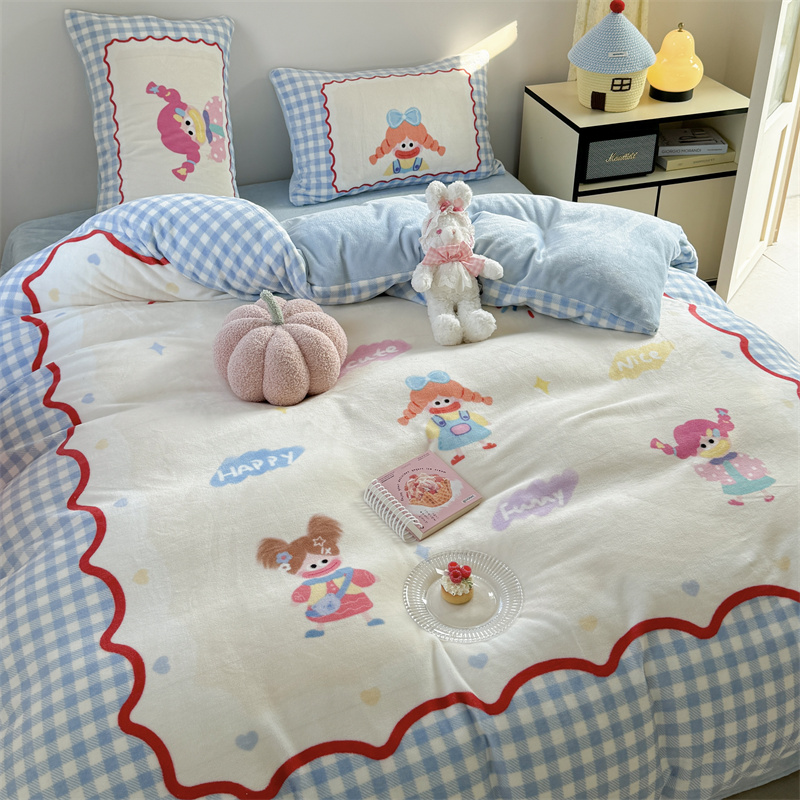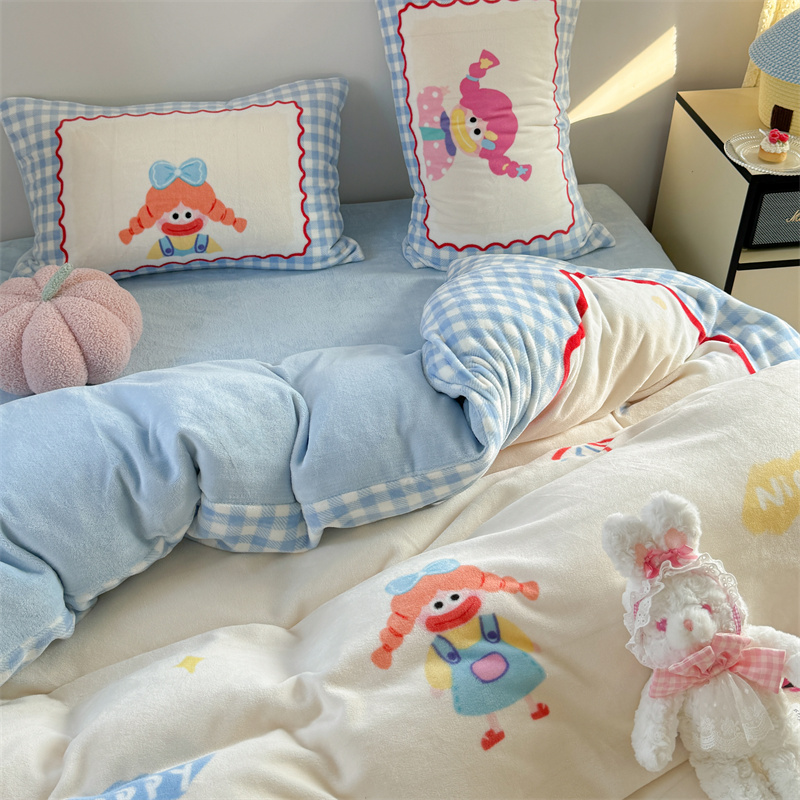 柚子YOUTH 2024新款大版印花牛奶绒四件套 小女孩