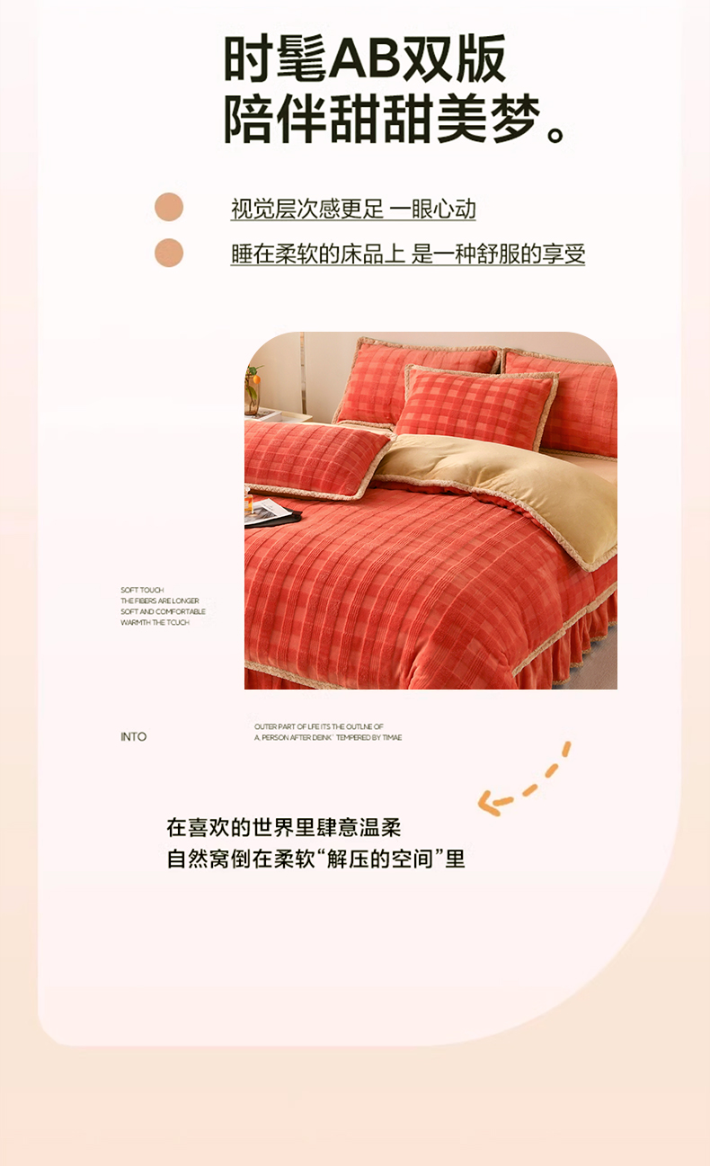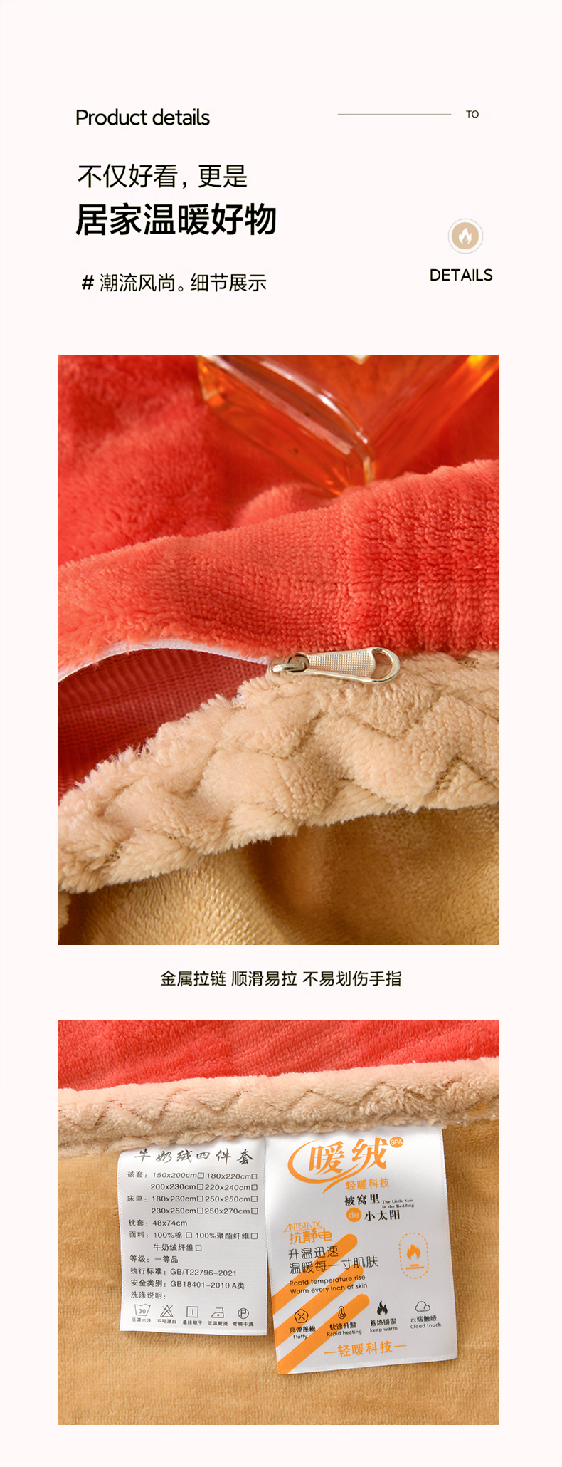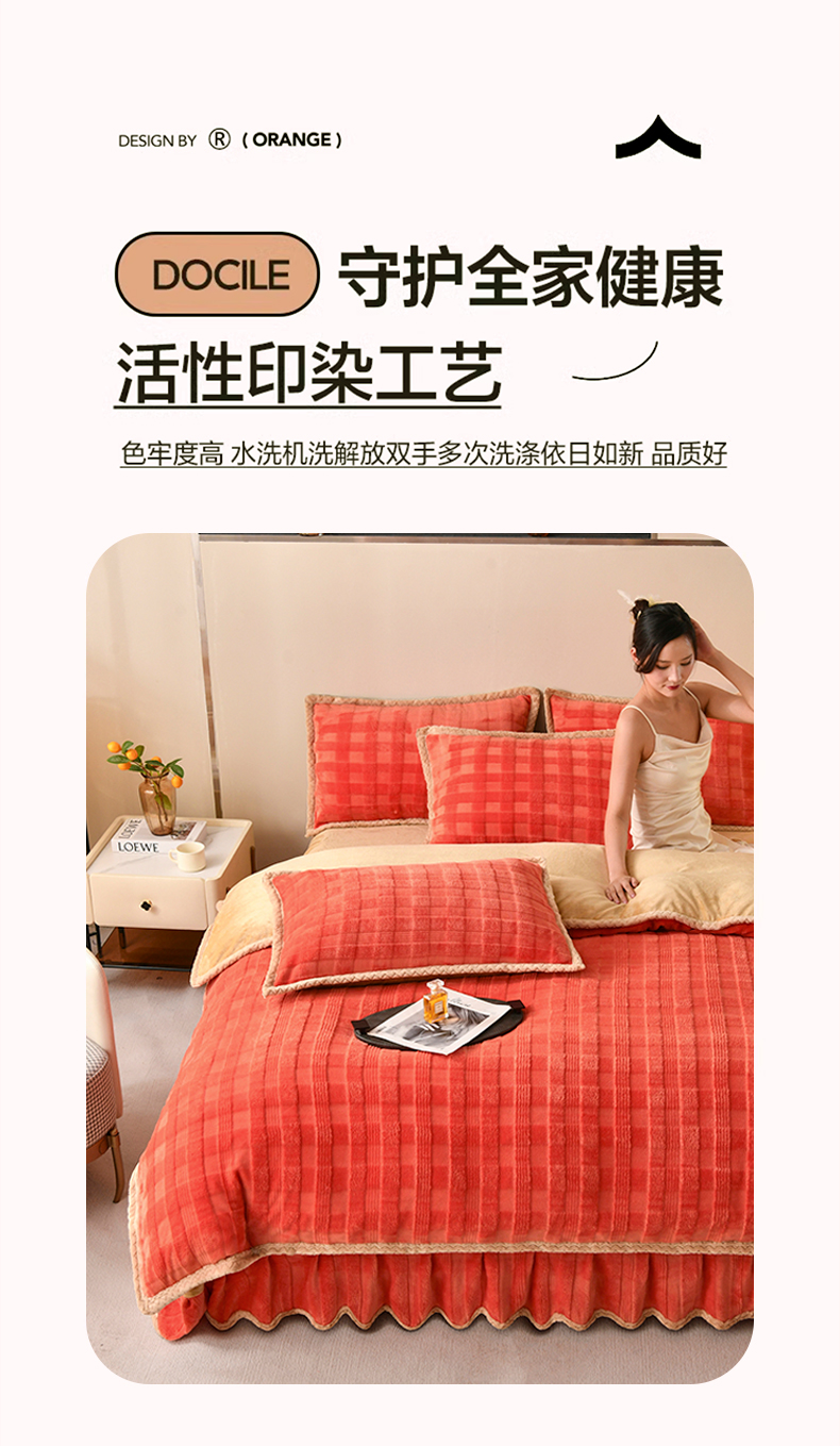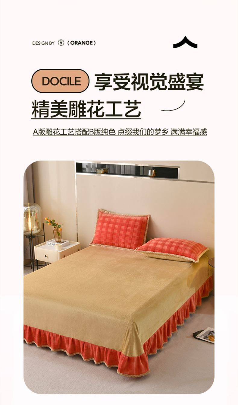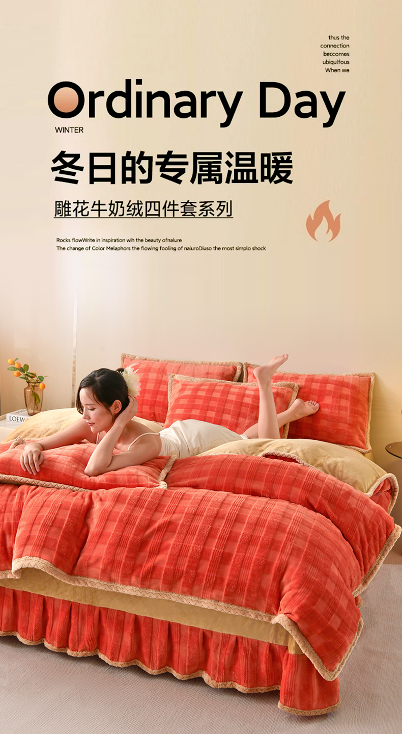 商品名称:满羽 2024新款雕花牛奶绒四件套 雅致格调-橘红