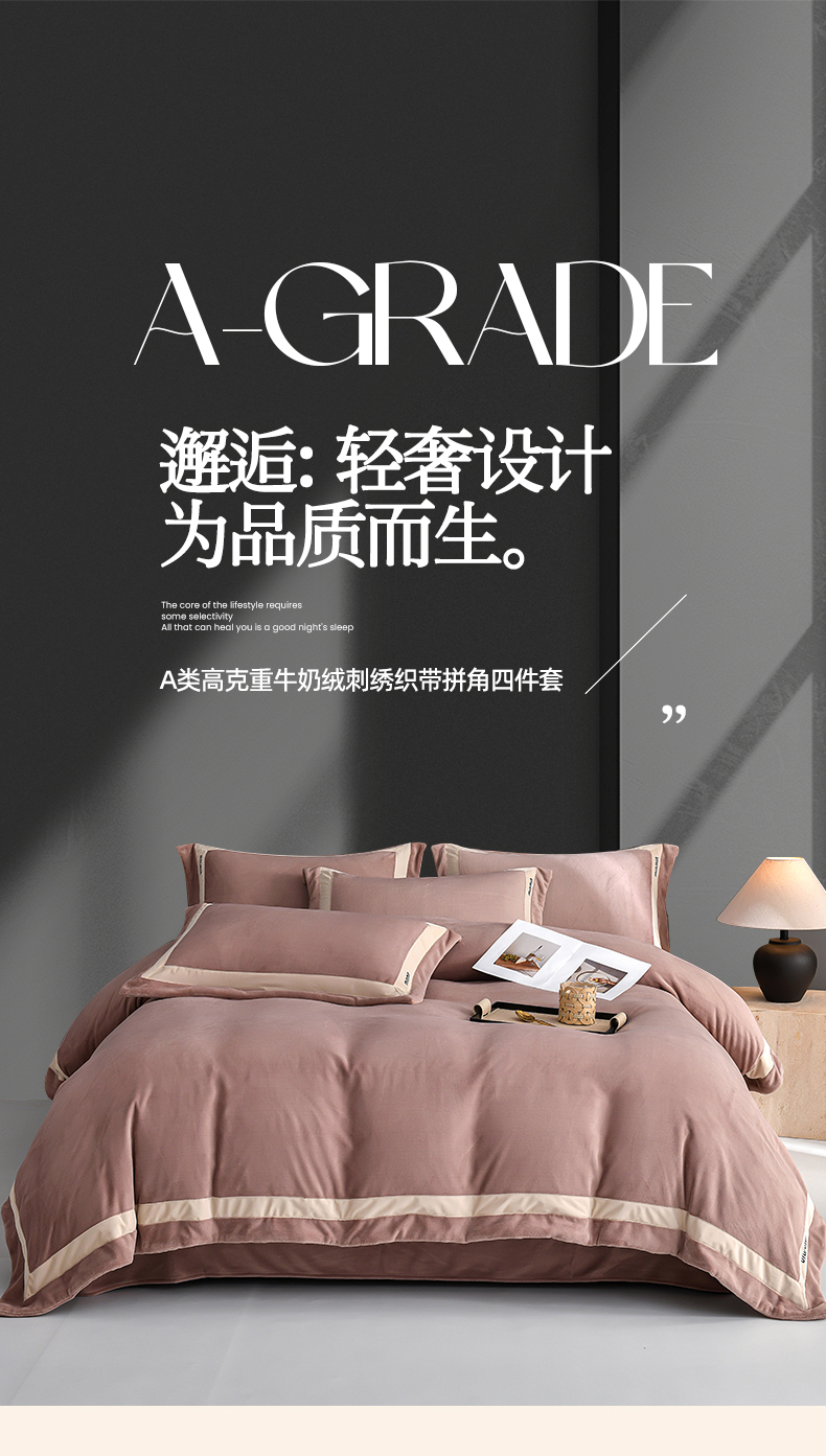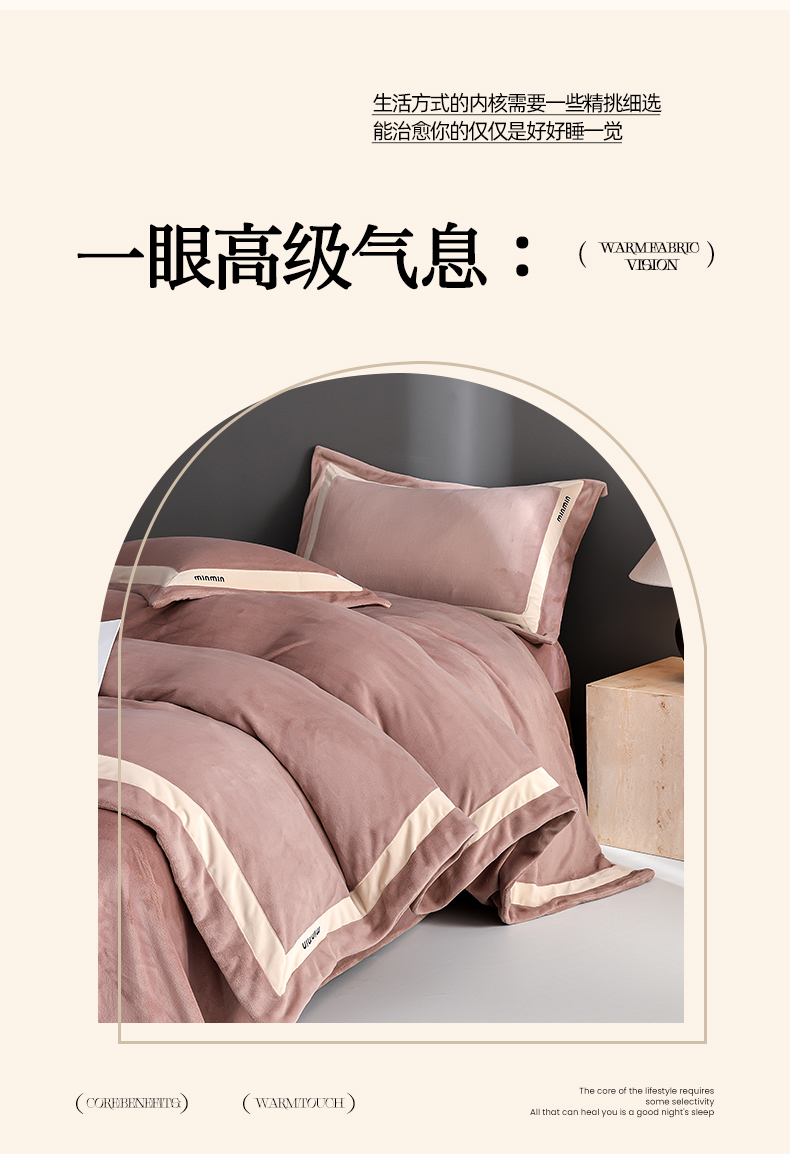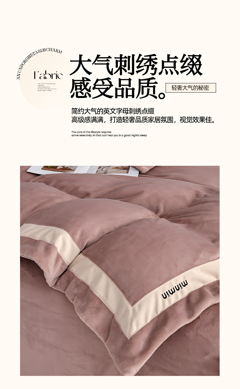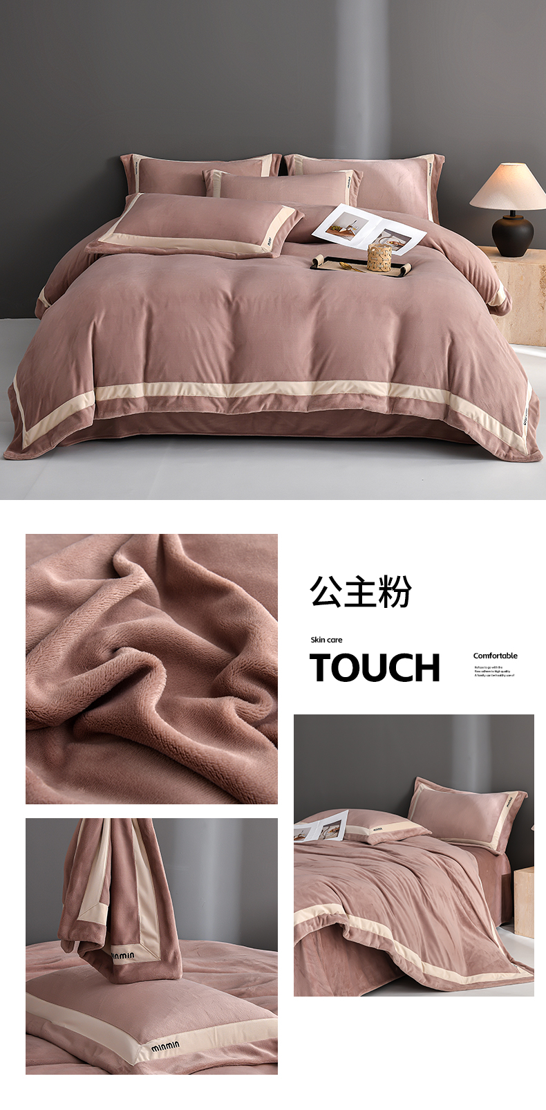 当前位置: 91家纺网 > 商品网购 > 床品套件 > 四件套 > 牛奶绒四件套 > 网客家纺 2024新款minmin牛奶绒刺绣四件套 minmin-公主粉