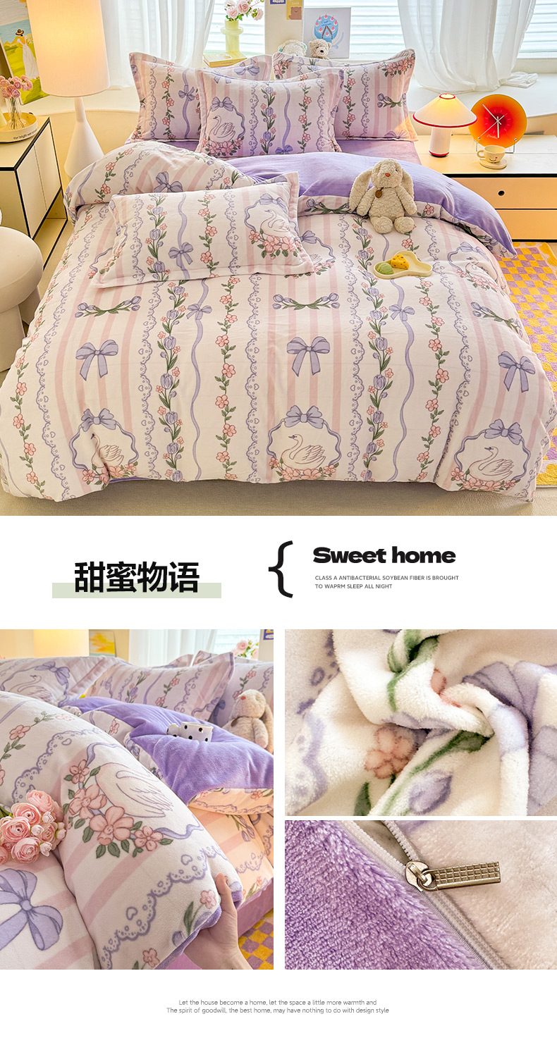 商品名称:逸尚阁 2024新款牛奶绒卡通印花单被套 甜蜜物语