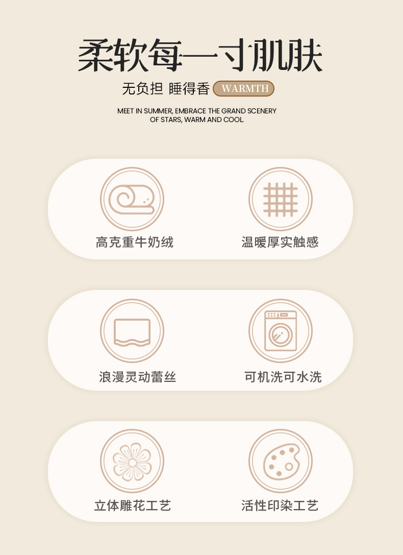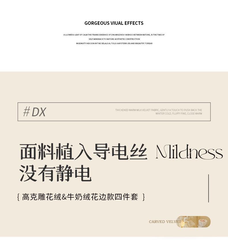 商品名称:亲亲公主 2025新款牛奶绒雕花保暖四件套-花恋 花恋-米色
