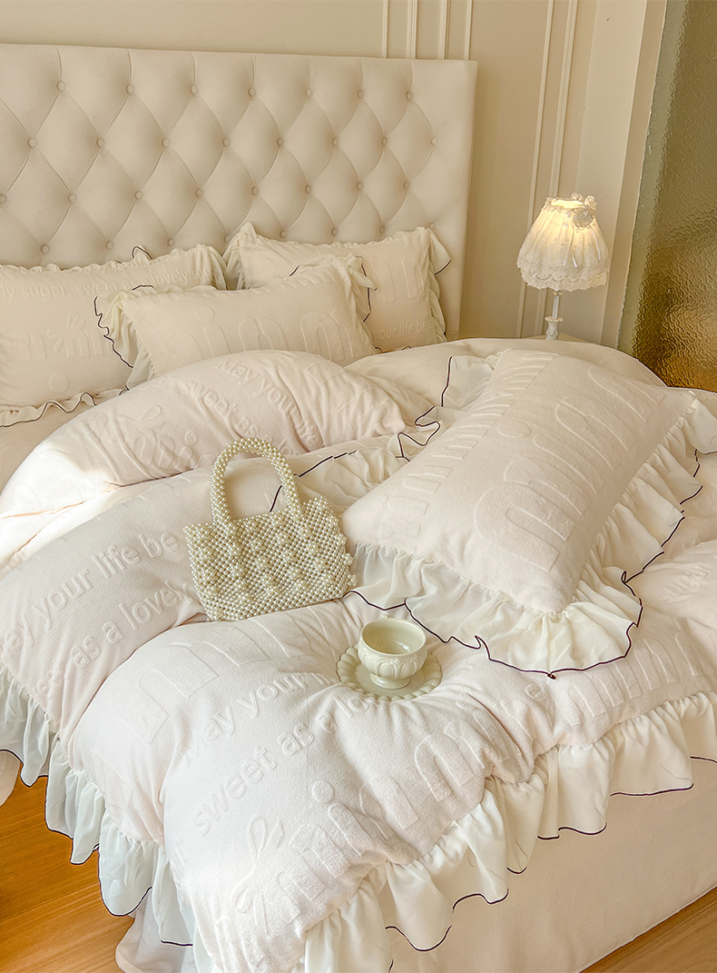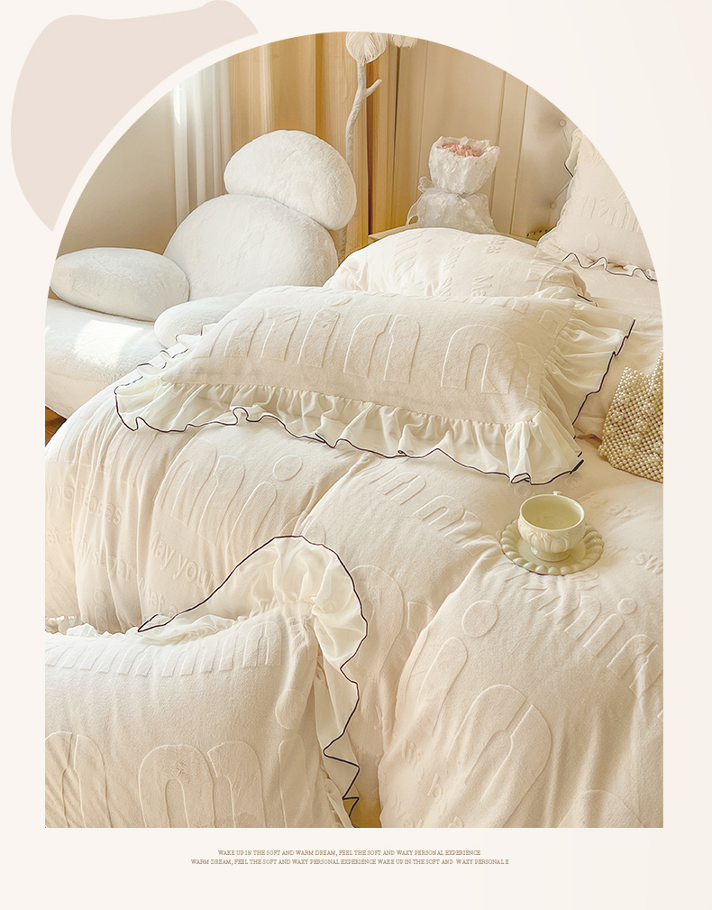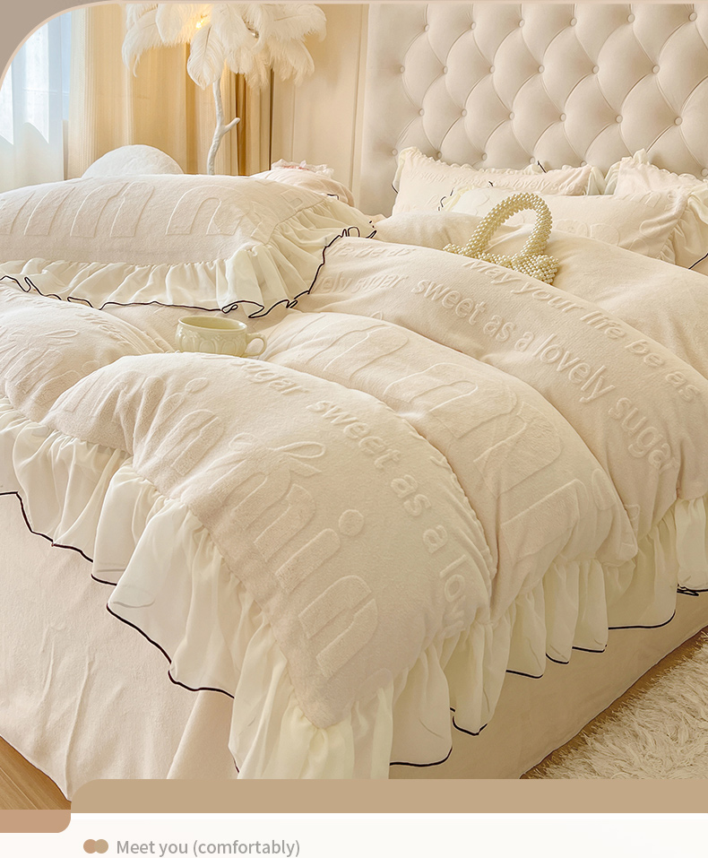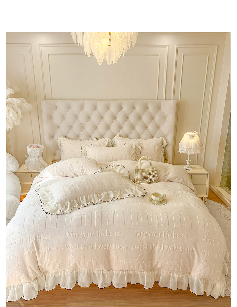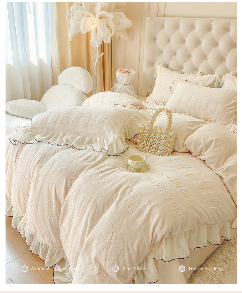 (总)亲亲公主 2025新款加厚高克重牛奶绒法式公主风四件套-热恋玫瑰,粉玉,奶白