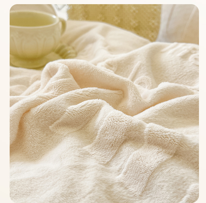 亲亲公主 2025新款牛奶绒雕花保暖四件套-花恋 花恋-米色