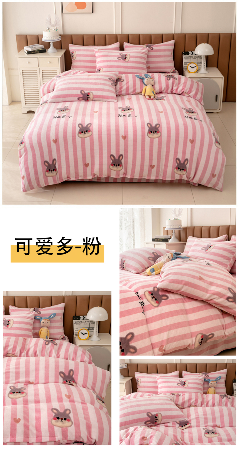 当前位置: 91家纺网 > 商品网购 > 床品套件 > 四件套 > 牛奶绒四件套 > 乐居坊 2024新款高克重牛奶绒印花保暖四件套 可爱多-粉