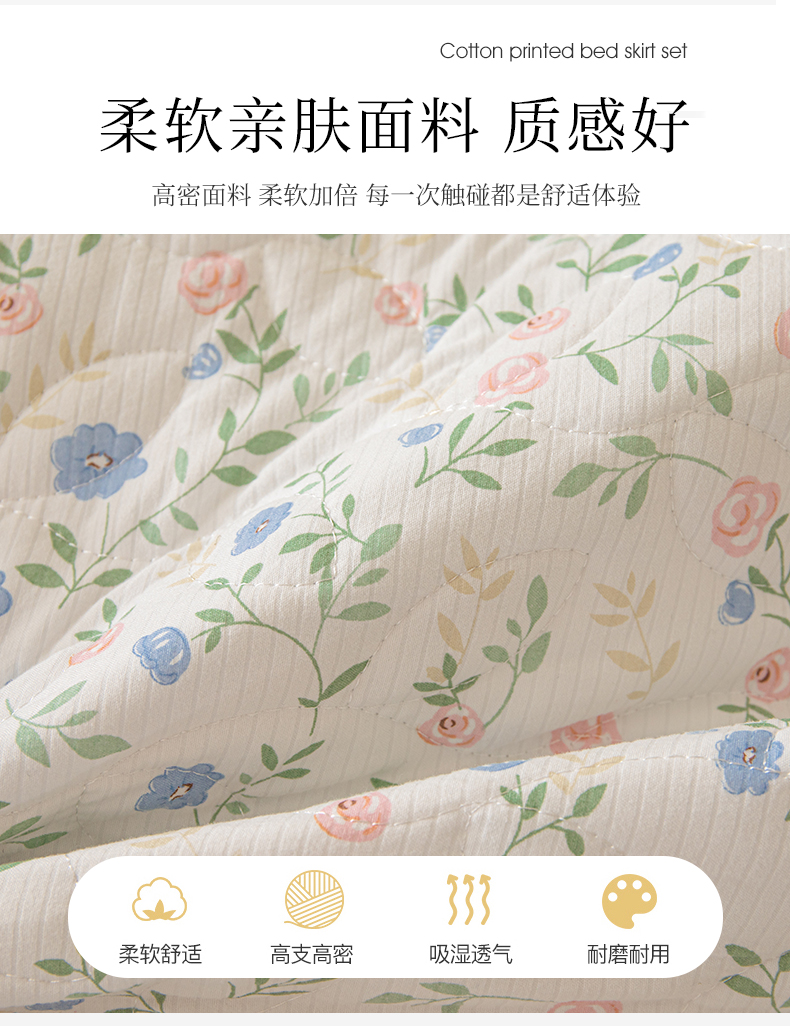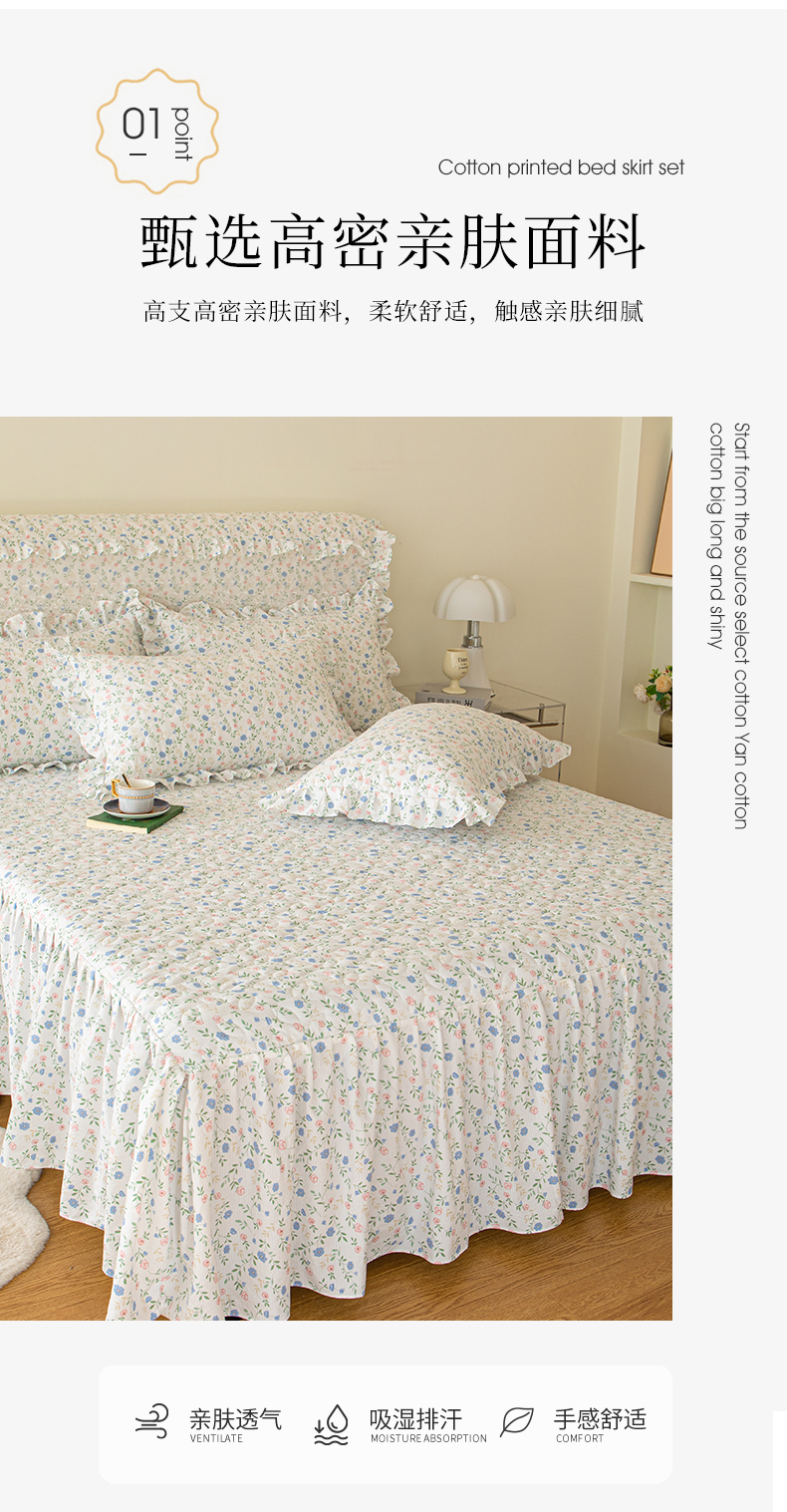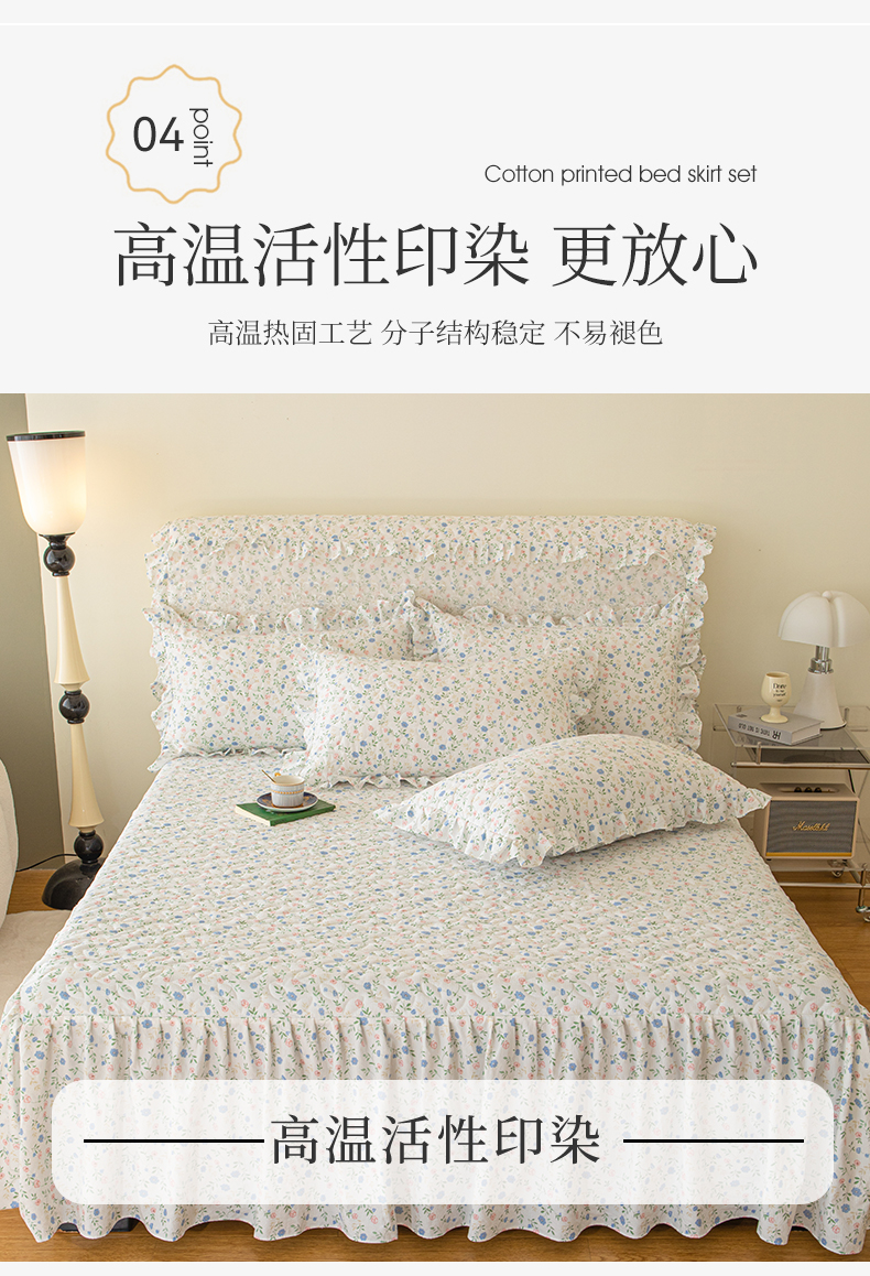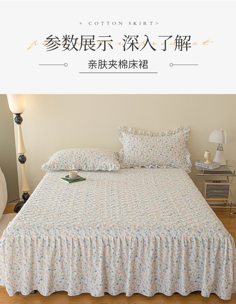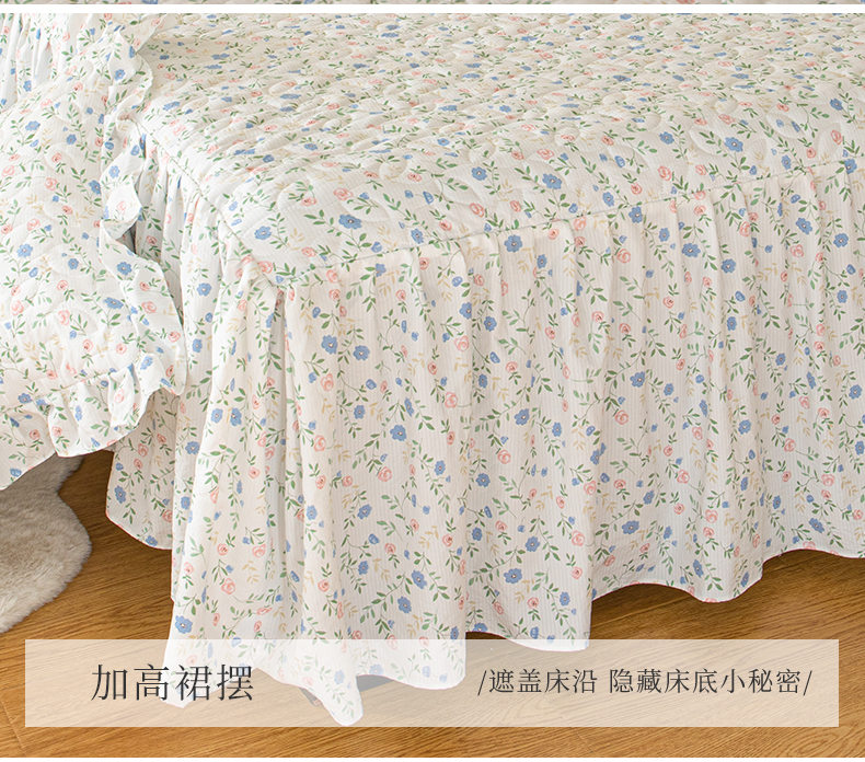 商品名称:十个点家纺 2024新款云锦棉印花床裙三件套-晚秋系列 富贵小花
