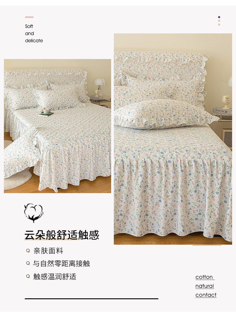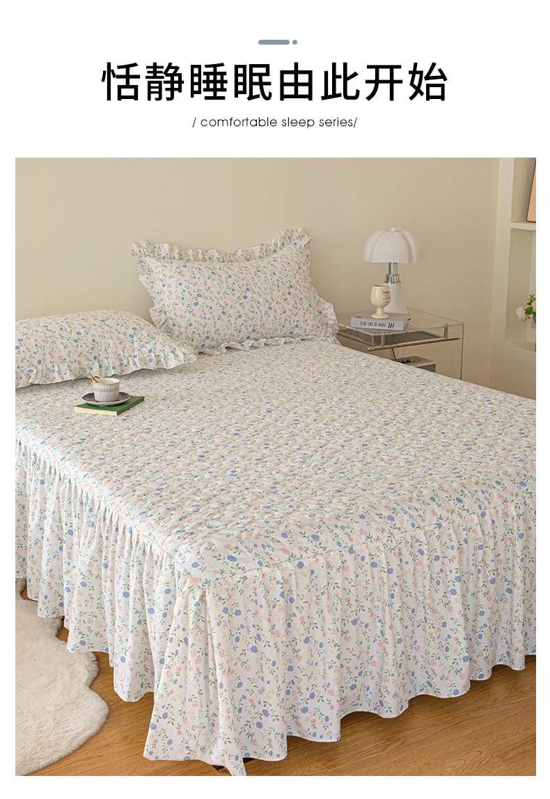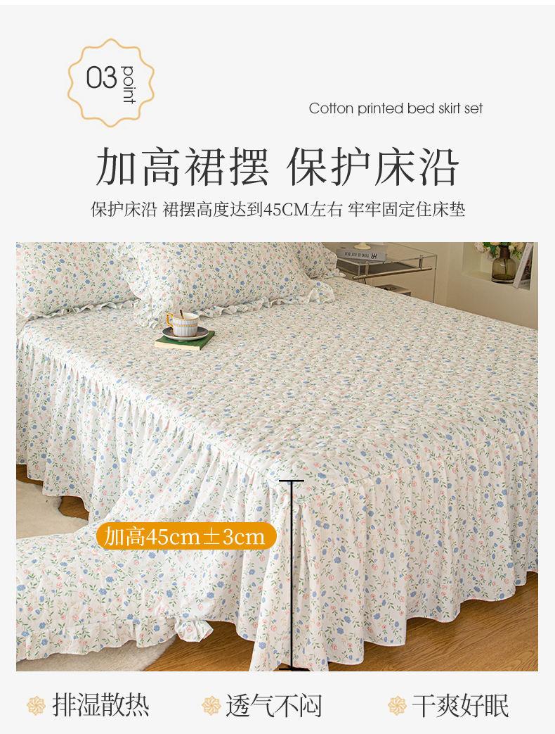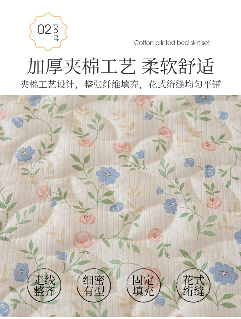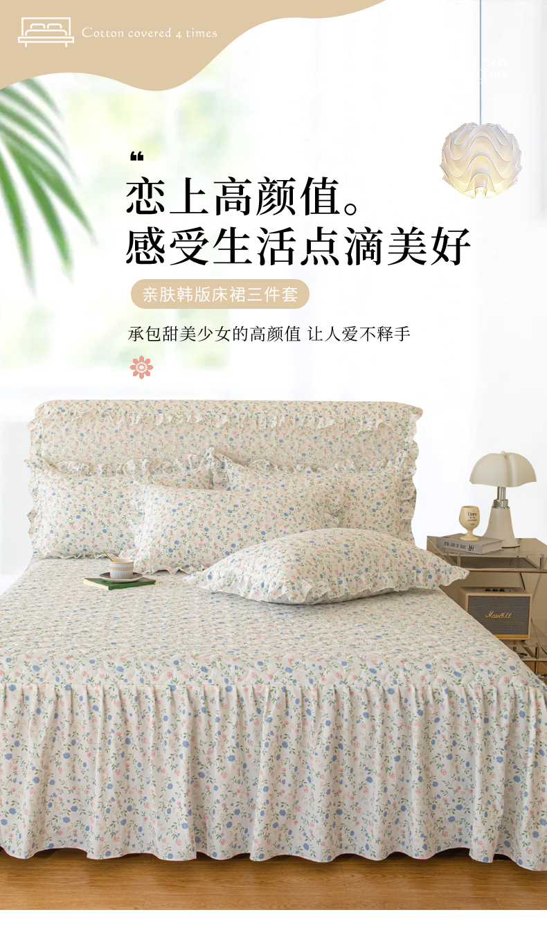 商品名称:十个点家纺 2024新款云锦棉印花床裙三件套-晚秋系列 富贵小花