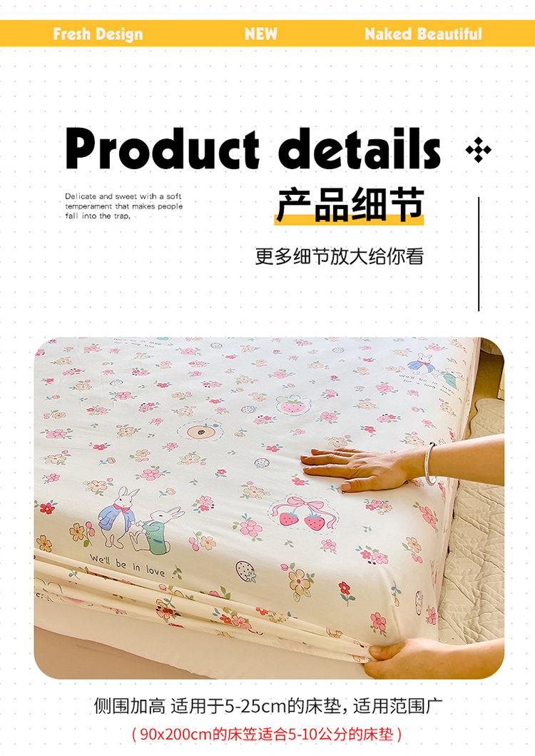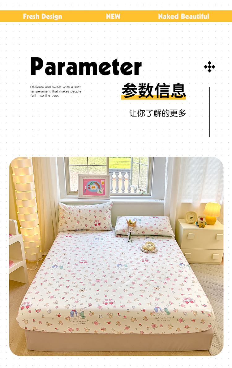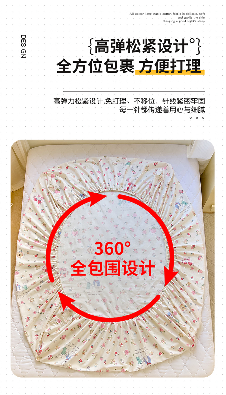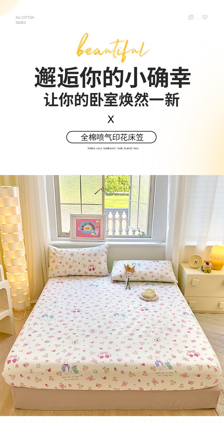 商品名称:拾物记 2024新款A类12868全棉喷气床笠 如茵小兔
