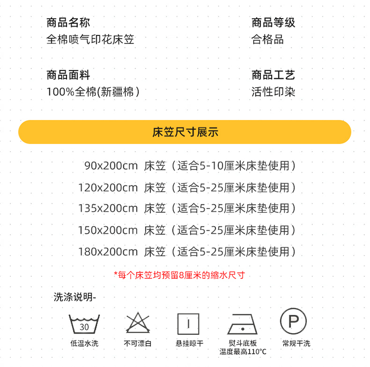 床单/床笠尺寸