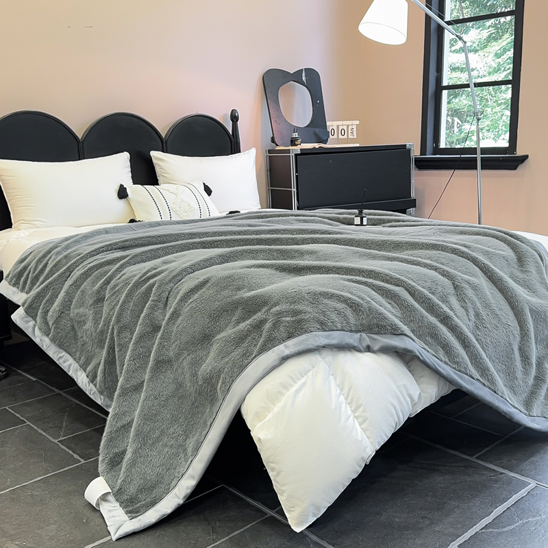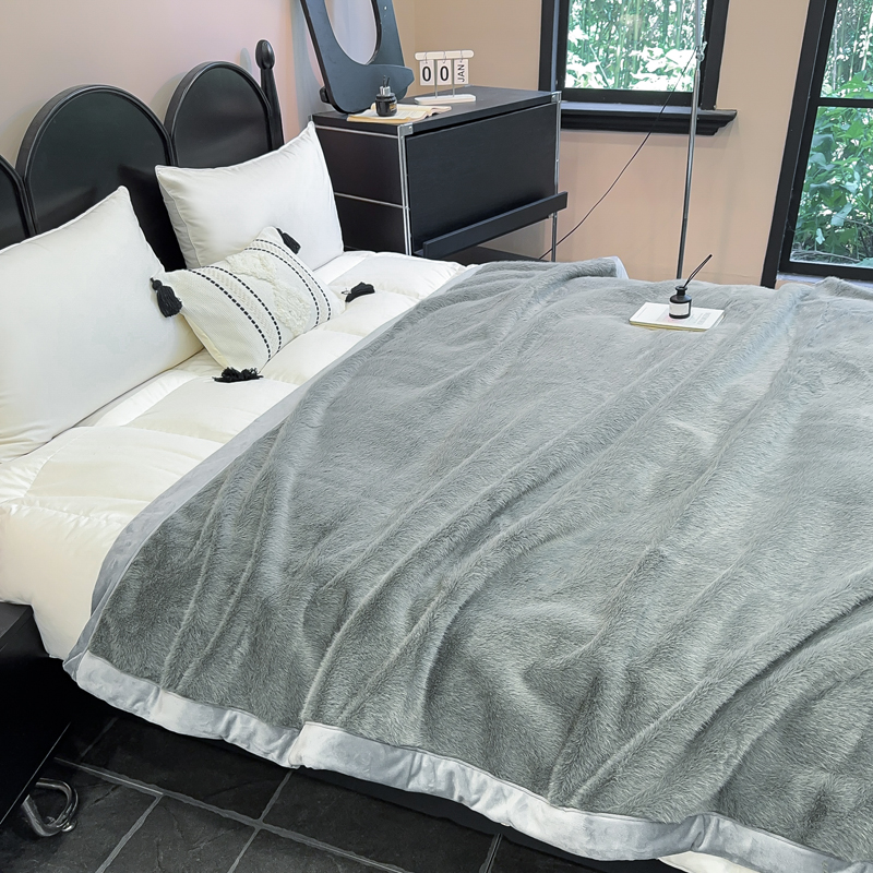 商品名称:2025新款纯色仿貂绒双面绒宝宝绒多功能休闲毯子办公室卧室复合毯子 浅灰