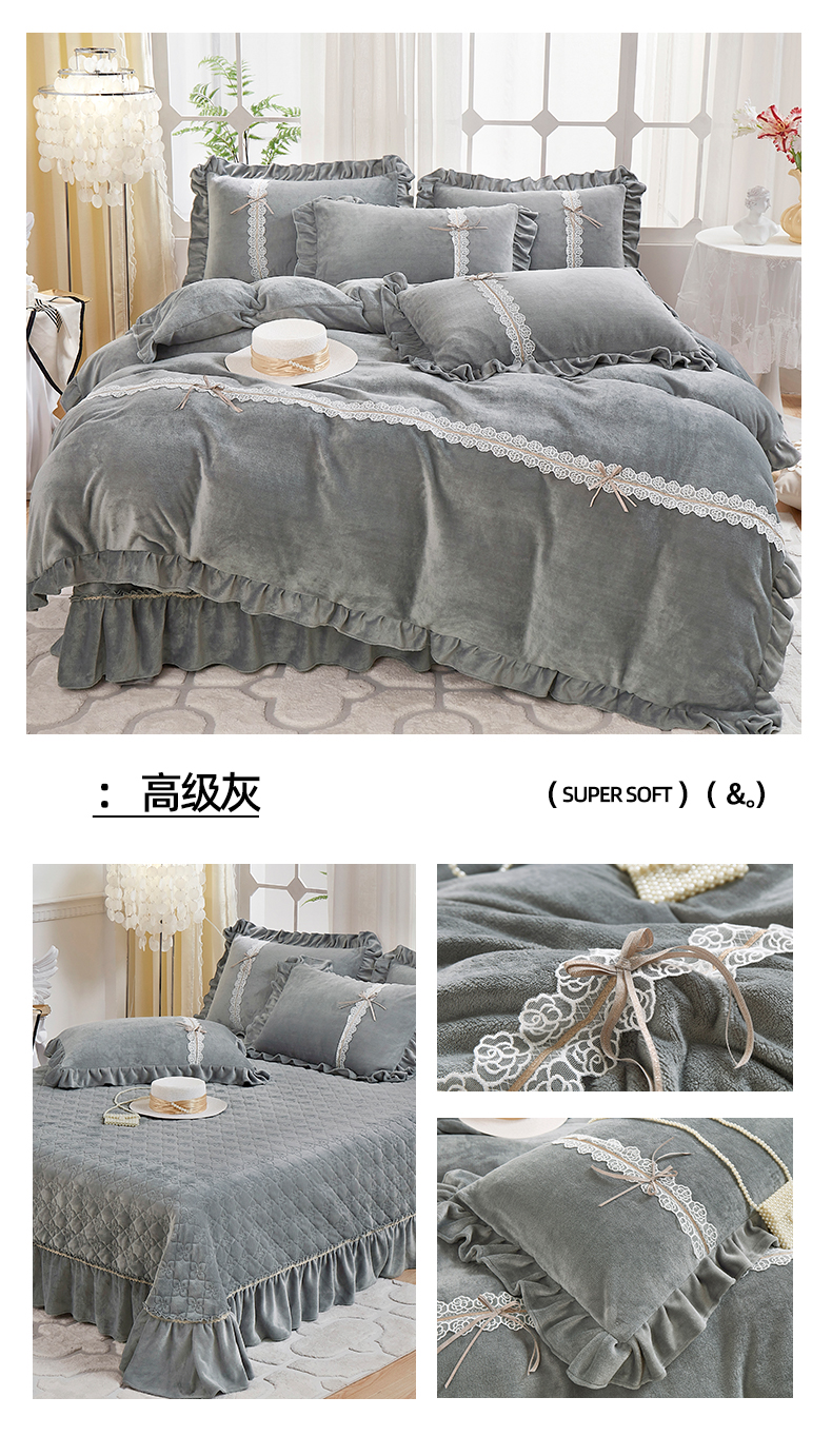 卡迪亚家纺 2024新款牛奶绒床盖款公主风四件套-依琳系列 依琳-抹茶绿