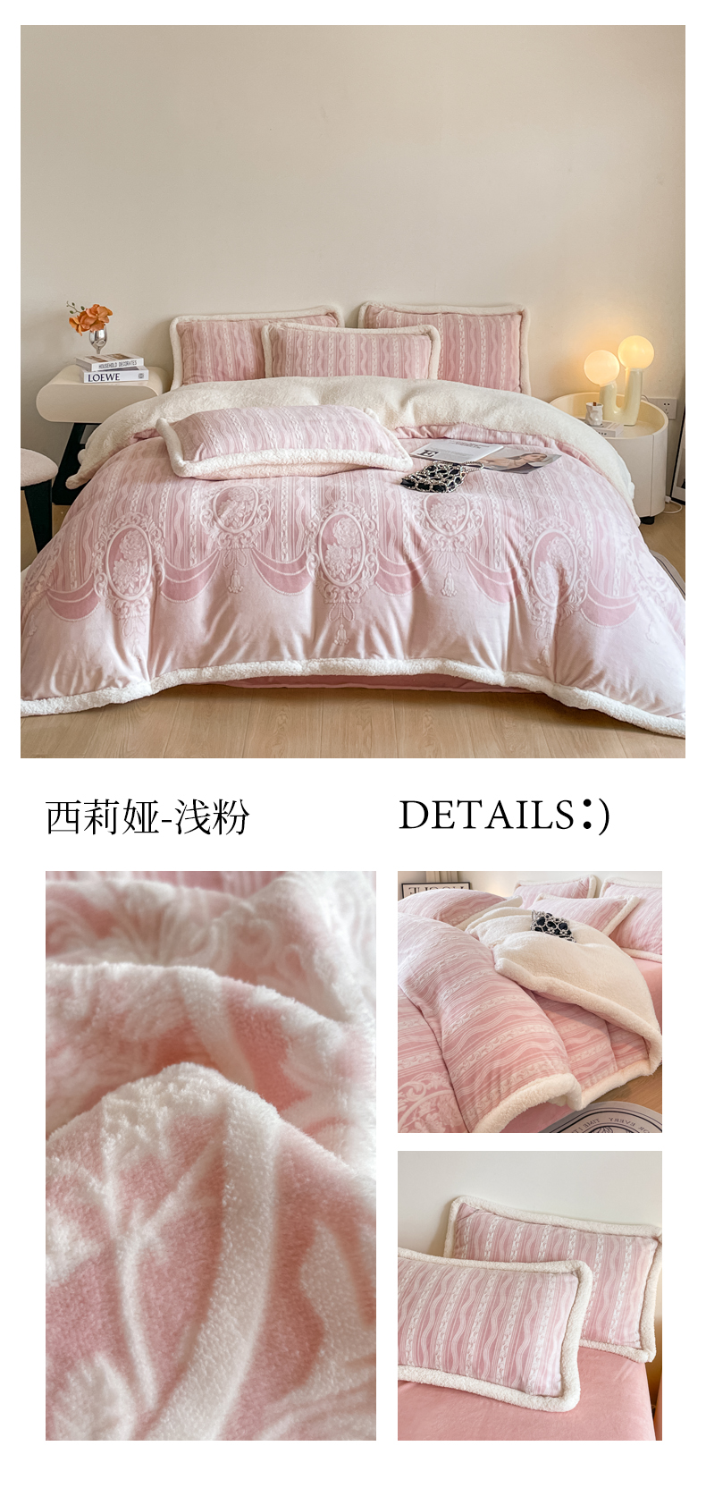 (总)慕晨 2025新款高克重雕花牛奶绒法式风大宽边拼角吊边床单四件套,可可西里-珊瑚粉,图岚朵-珊瑚粉,可可西里-灰蓝,图岚朵-松石绿,图岚朵-柔雾蓝
