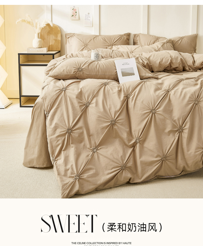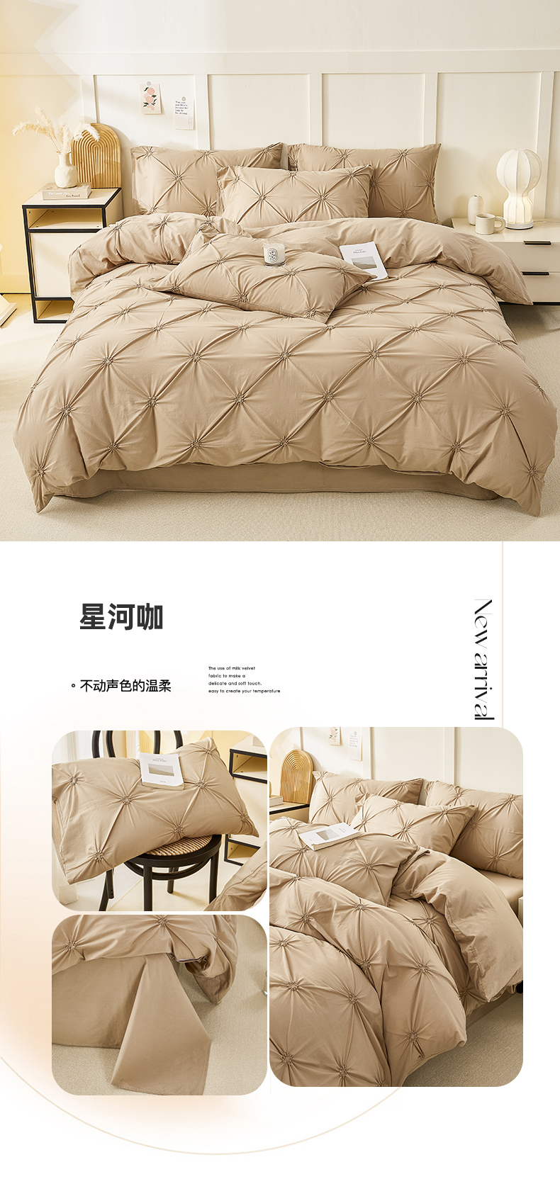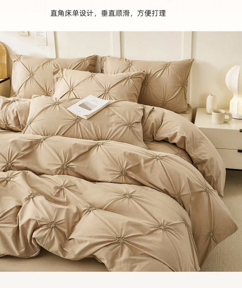 九沐良品 新款全棉工艺立体扭花网红韩版公主风女生四件套 星河咖