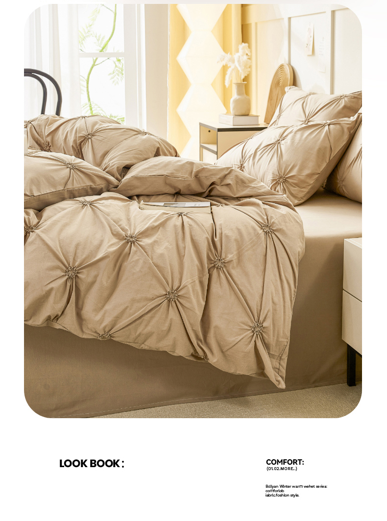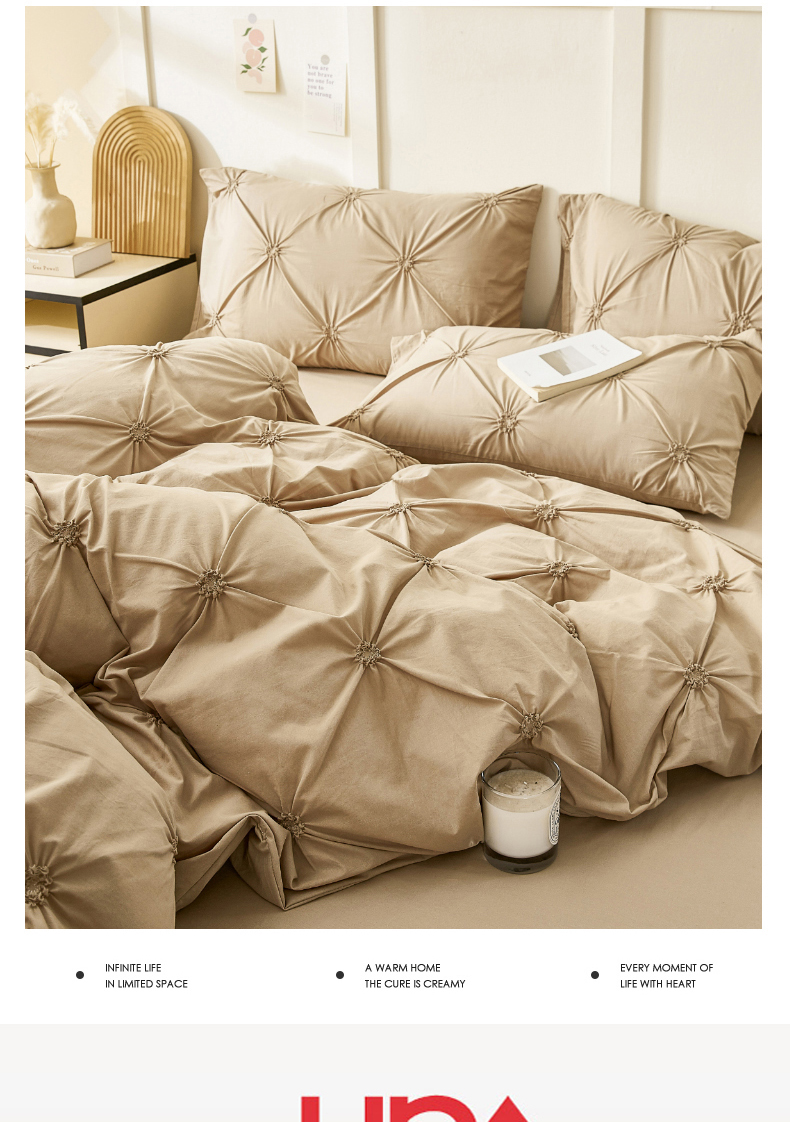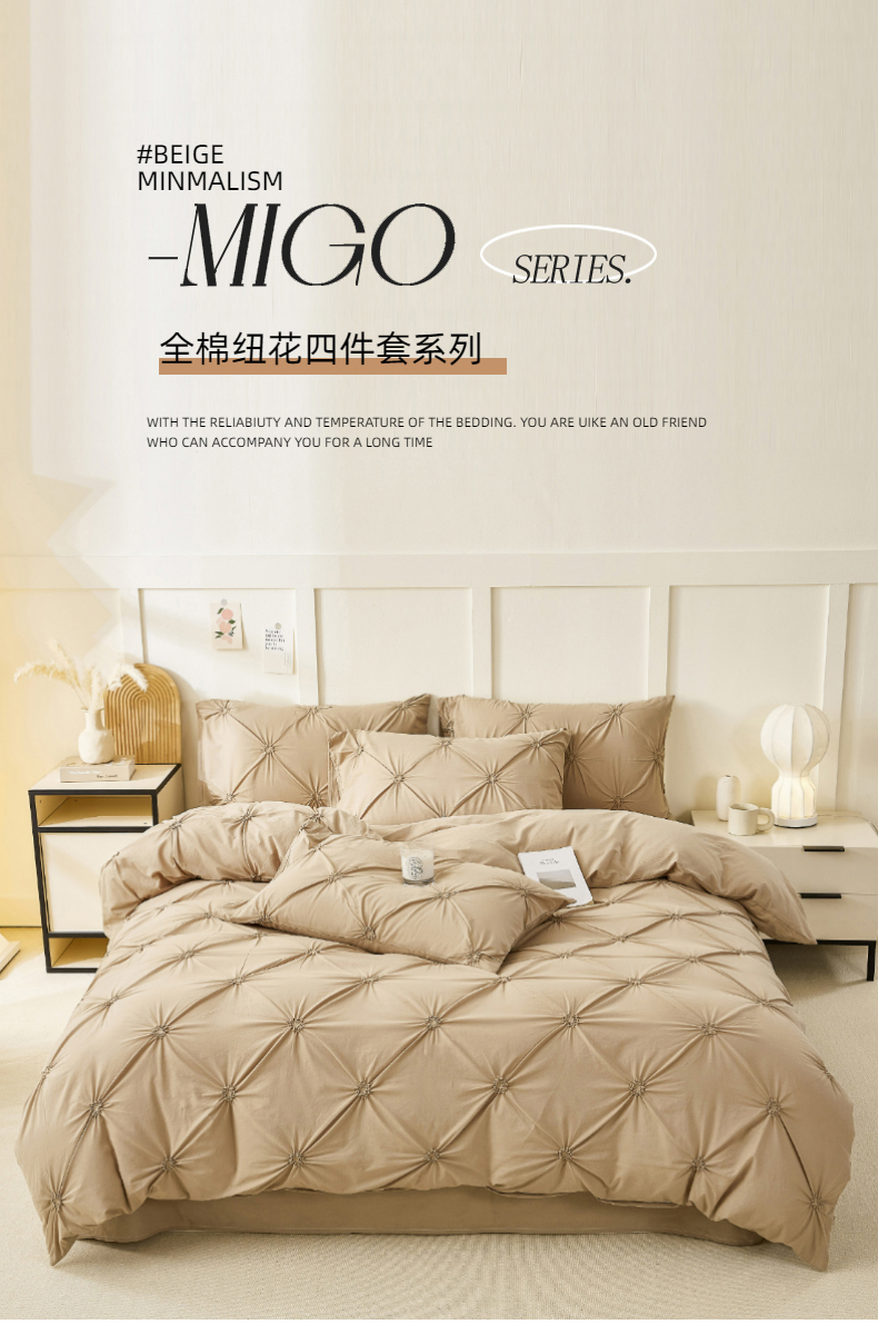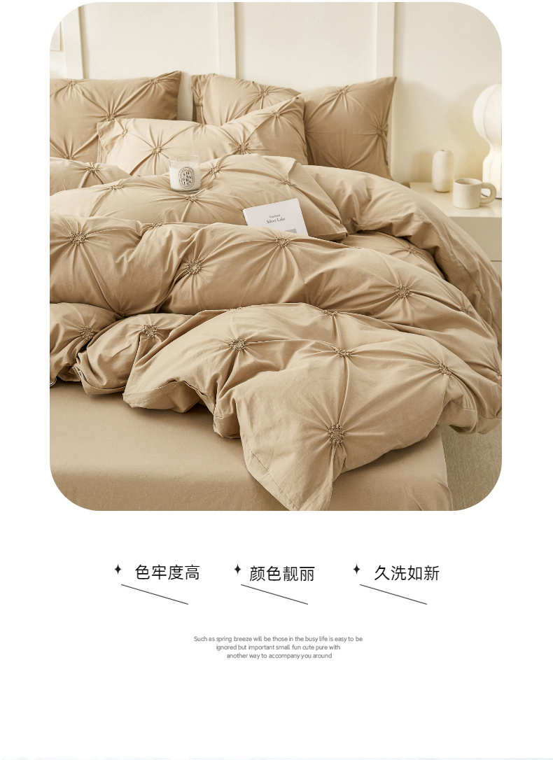 九沐良品 新款全棉工艺立体扭花网红韩版公主风女生四件套 星河咖