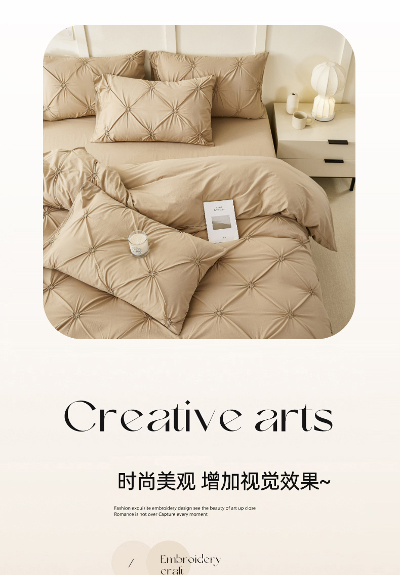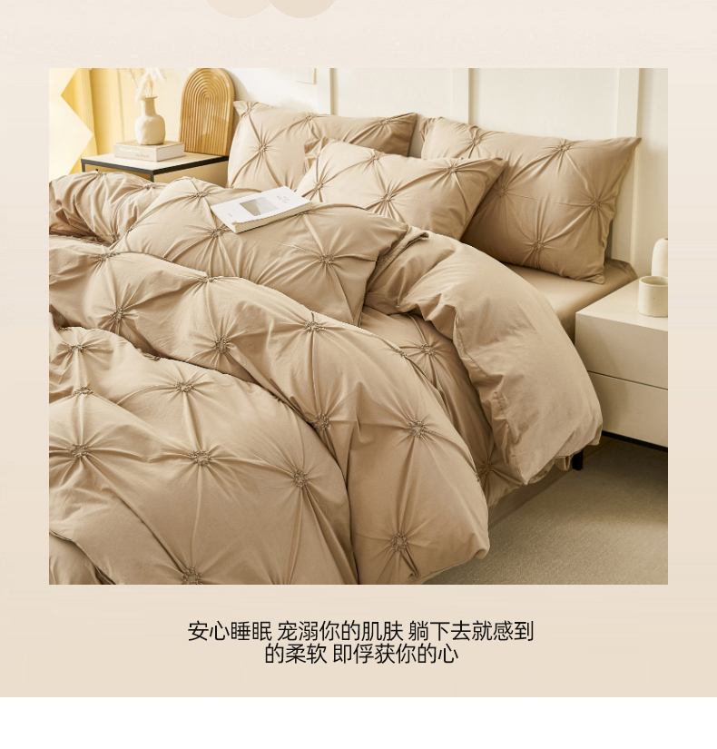商品名称:九沐良品 新款全棉工艺立体扭花网红韩版公主风女生四件套 星河咖