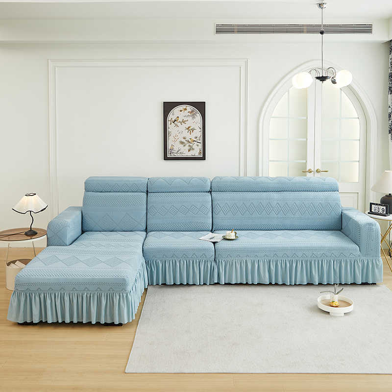 当前位置: 91家纺网 > 商品网购 > 居家布艺 > 坐垫/椅垫/沙发垫 > 沙发垫 > 丝绮鹿 2024新款雕花绒菲亚沙发套裙边款(贵妃图) 淡蓝
