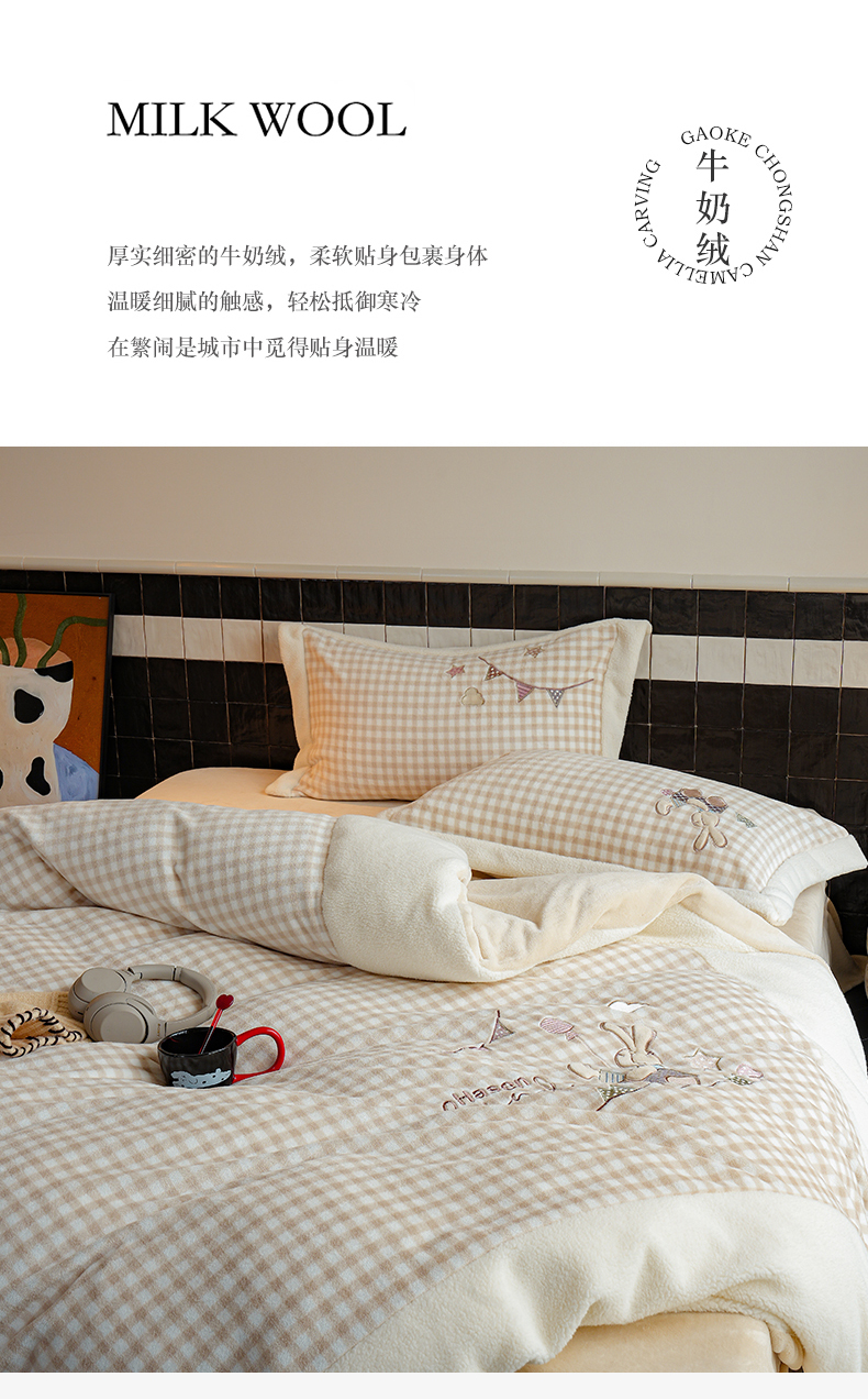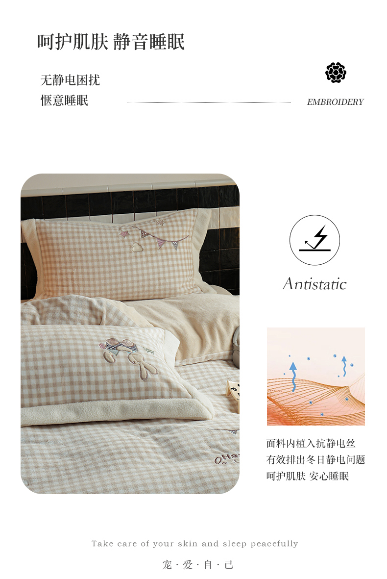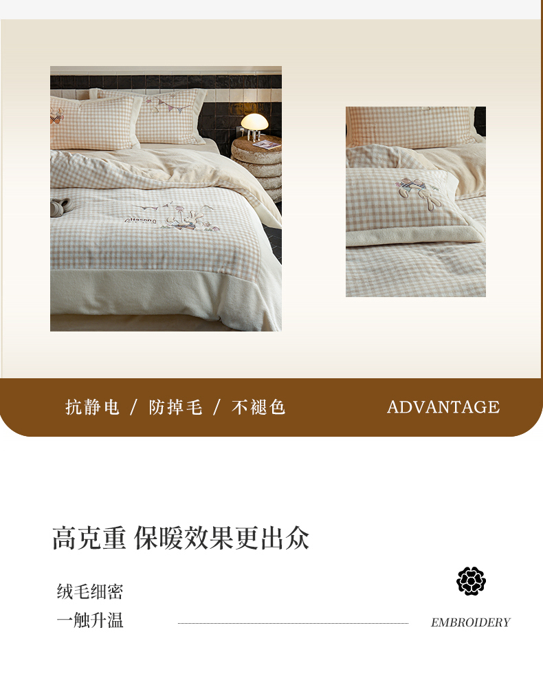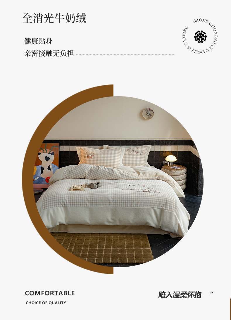 当前位置: 91家纺网 > 商品网购 > 床品套件 > 四件套 > 牛奶绒四件套 > 沐晴家纺 2024秋冬新品高克重牛奶绒拼色毛巾绣卡通绣花款绵羊绒四件套 假日兔兔-卡其