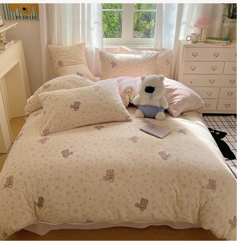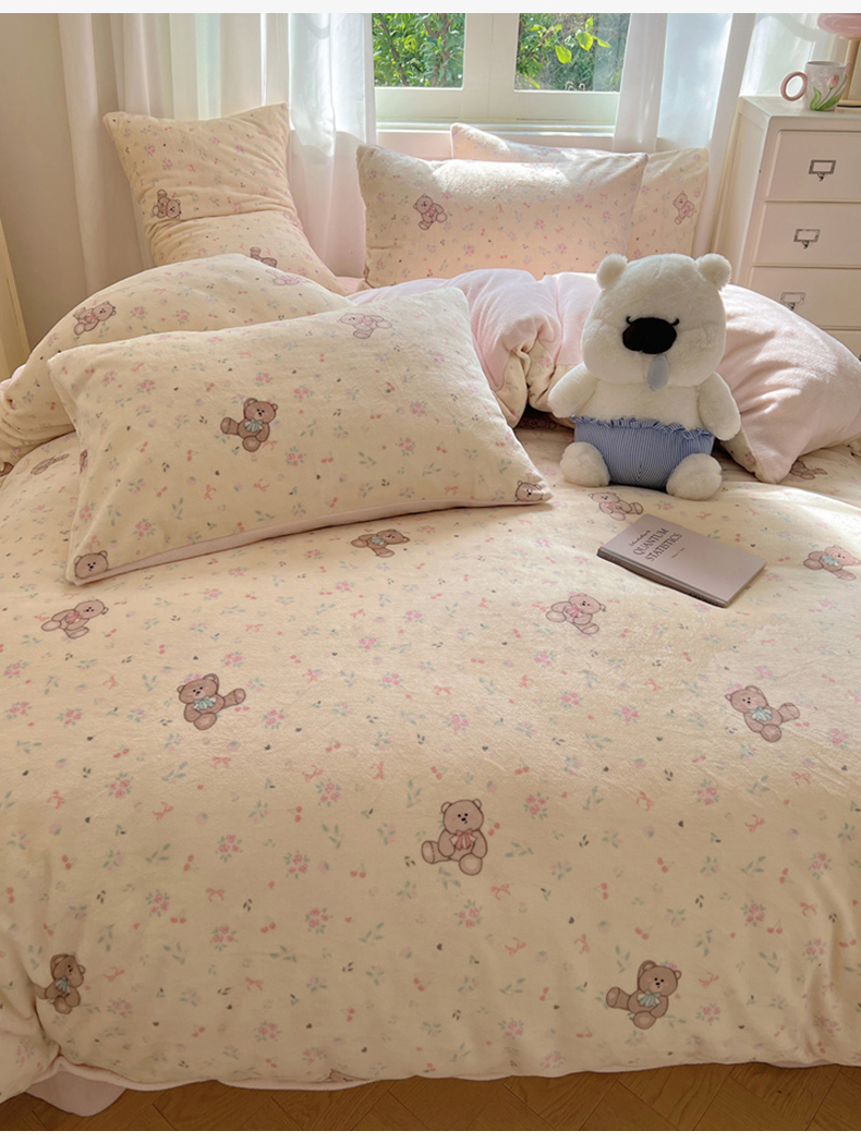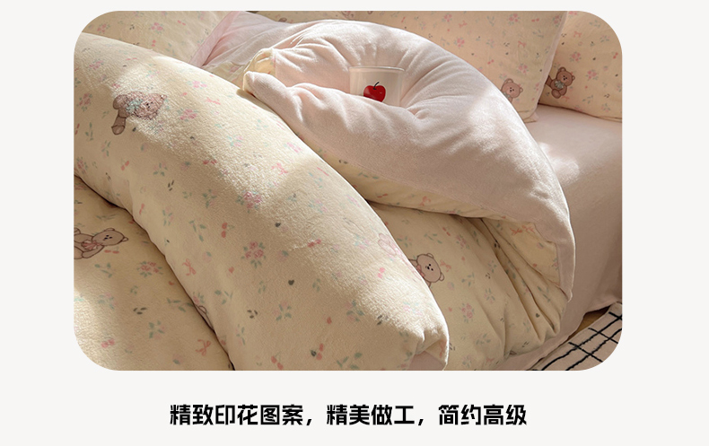 红嘴企鹅 2025新款牛奶绒印花四件套 萌萌熊