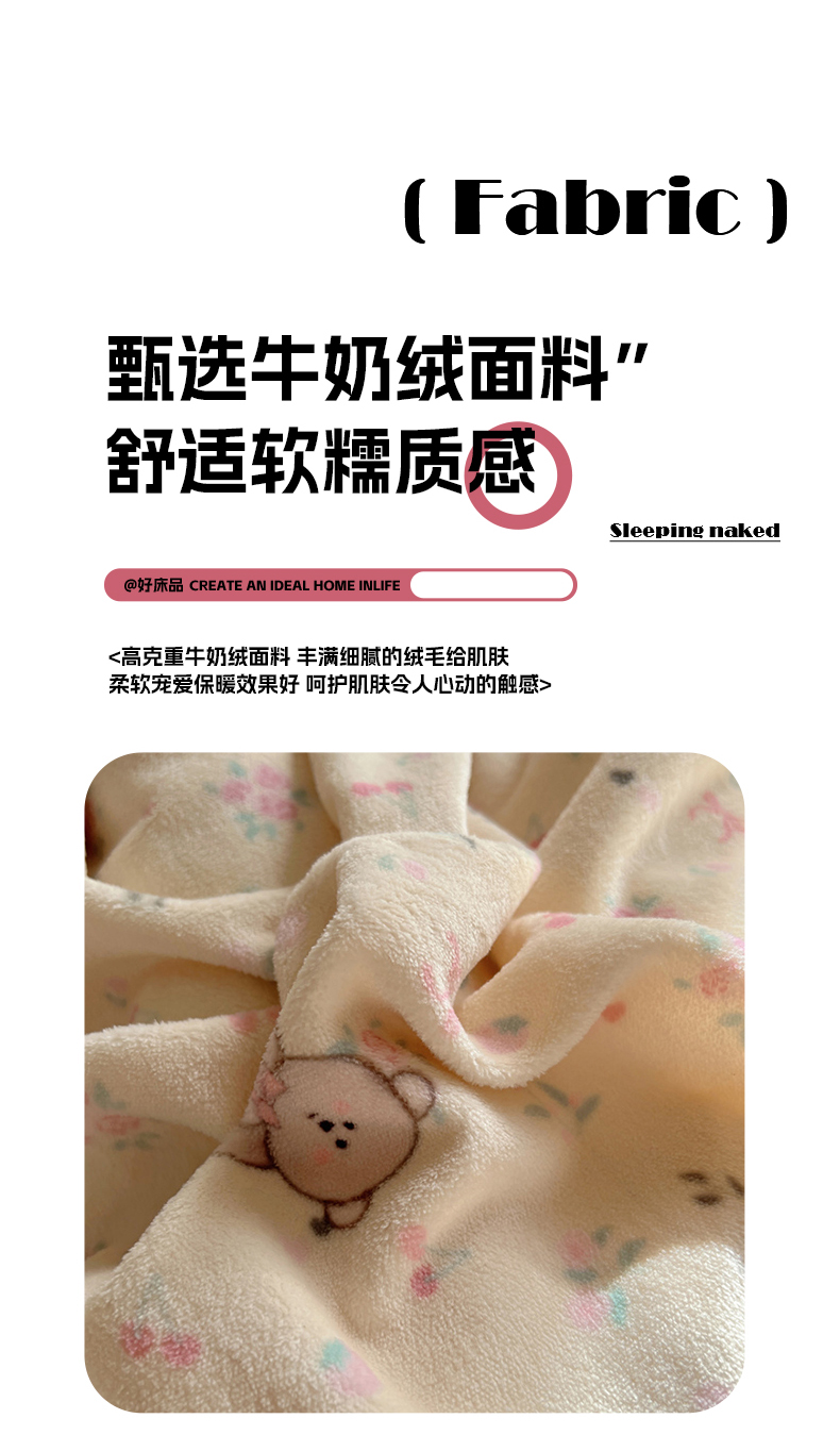 商品名称:红嘴企鹅 2025新款牛奶绒印花四件套 萌萌熊