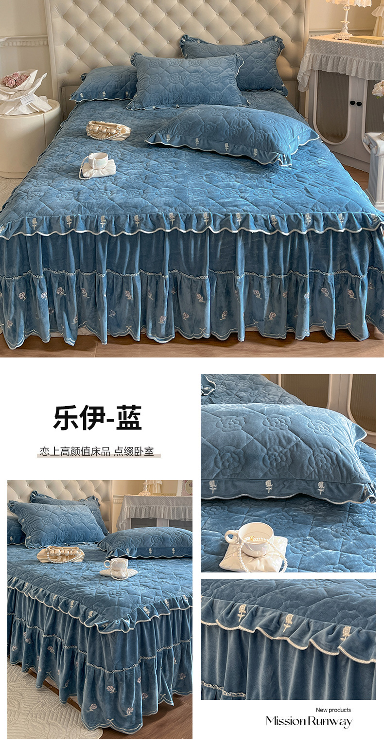 (总)网红馆(ck家纺) 2025新款色织提花牛奶绒床裙四件套-洛丽塔系列,洛丽塔-豆沙,洛丽塔-蓝色,洛丽塔-米色