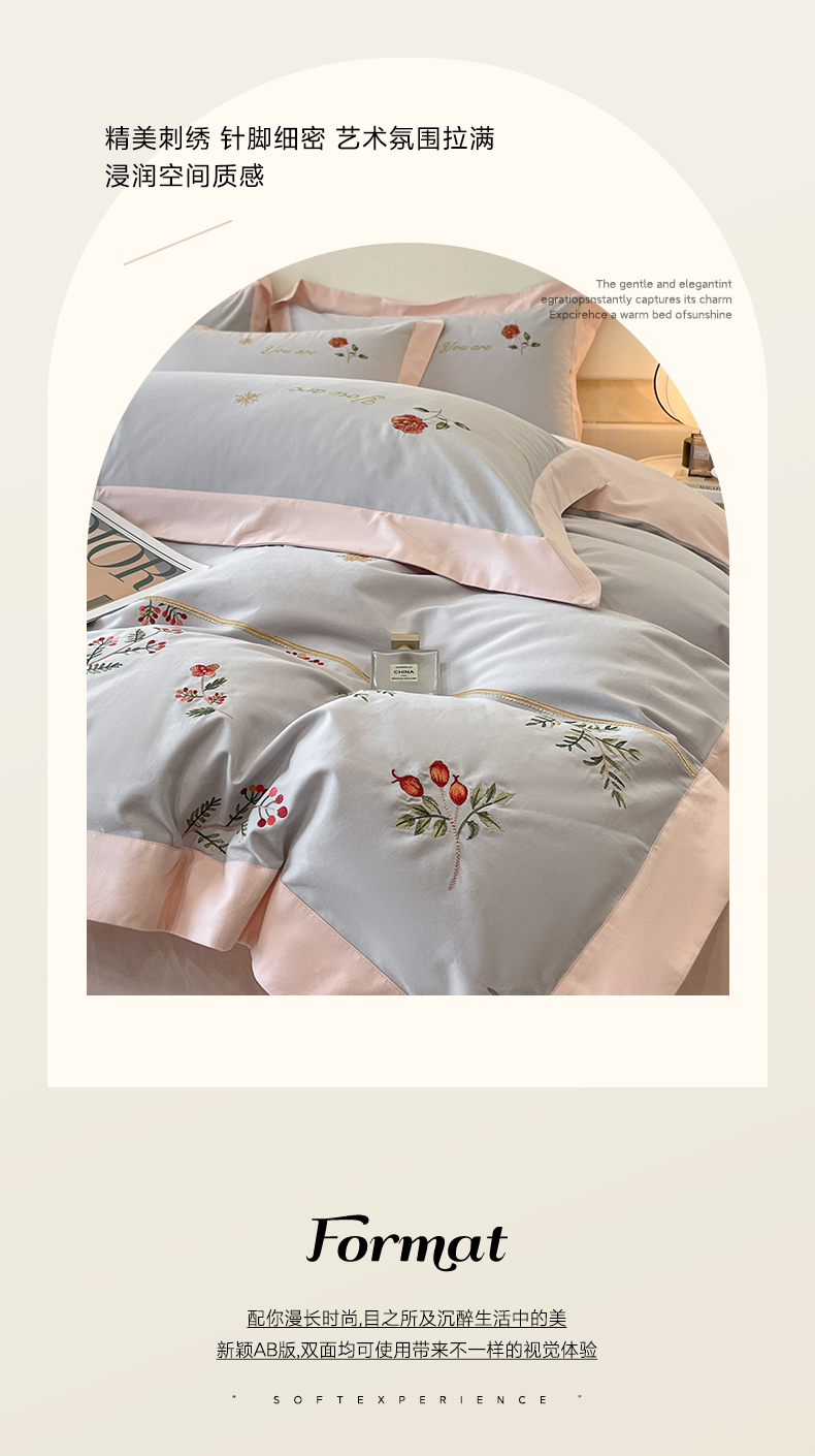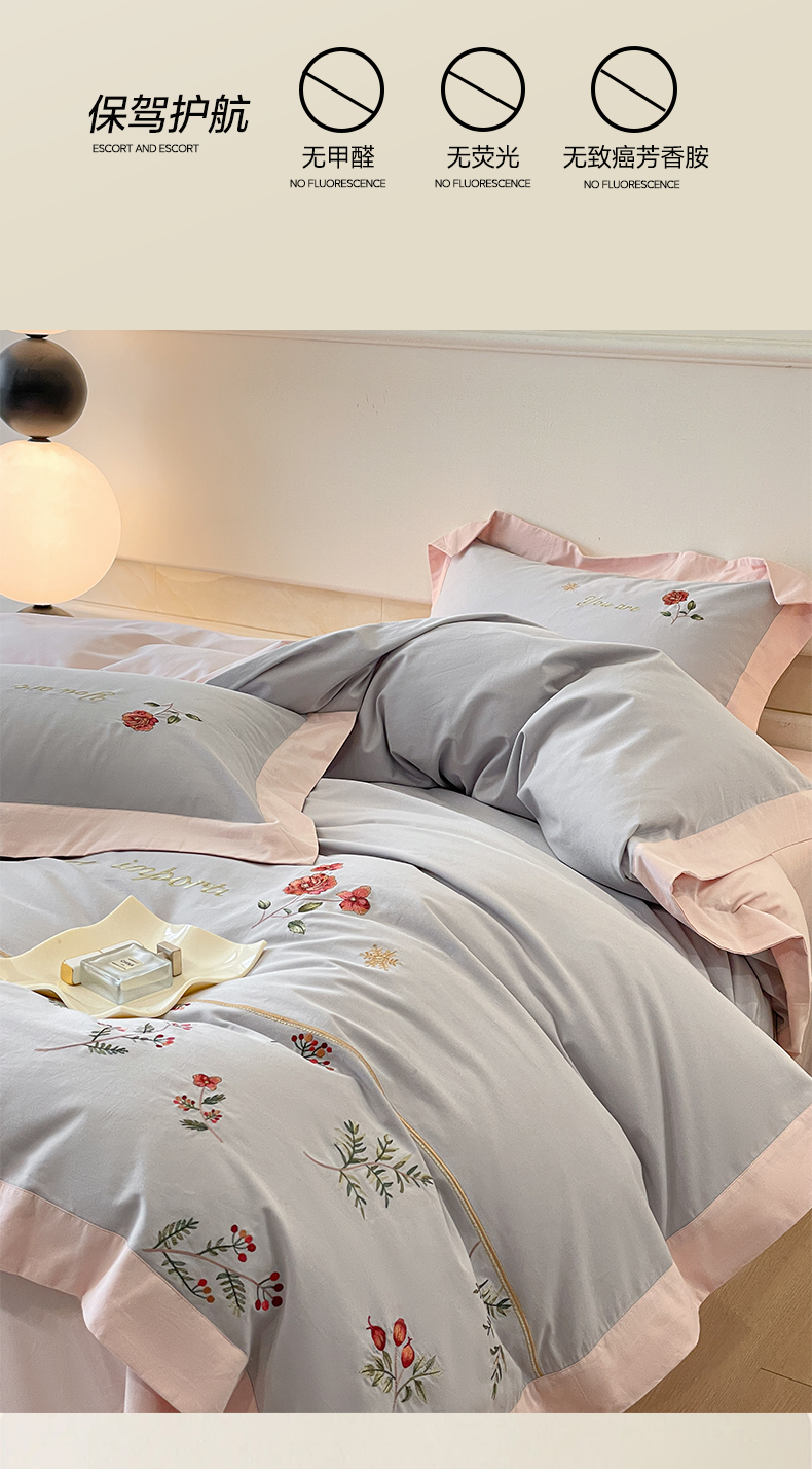 (总)遇见家居生活馆 2025新款亲肤棉刺绣四件套-花田里,花田里-白粉,花田里-冰清绿,花田里-公主粉,花田里-灰粉,花田里-香槟色,花田里-香芋紫,花田里-樱花粉