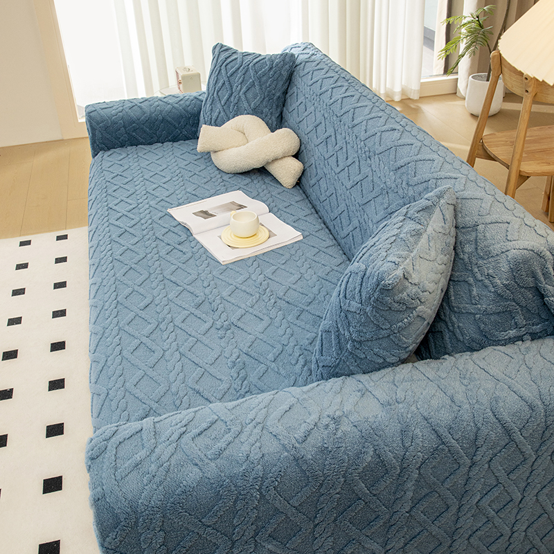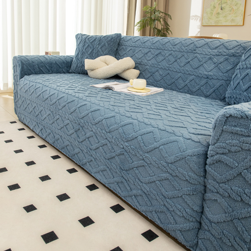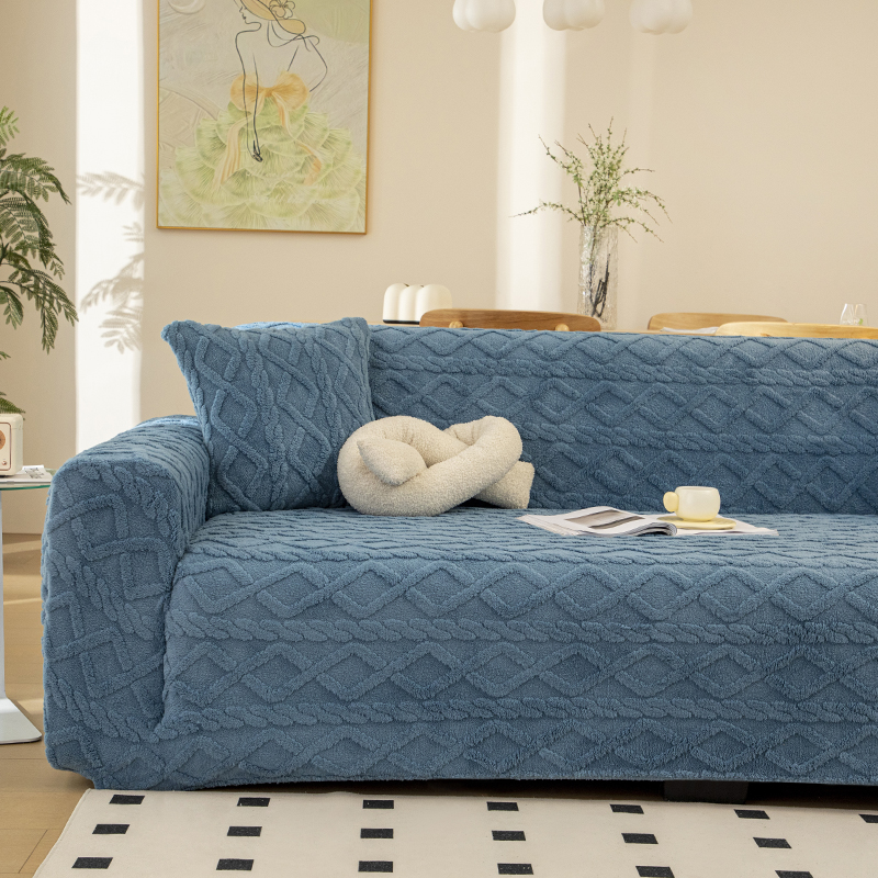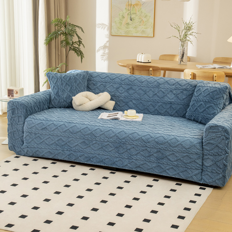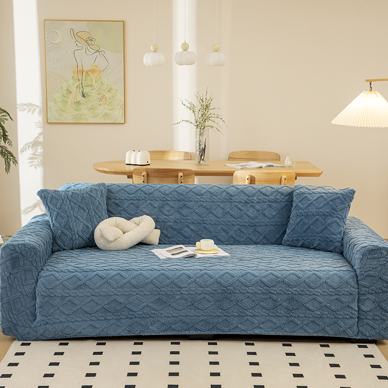 2026新款亲肤舒适舒棉绒沙发套 孔雀蓝
