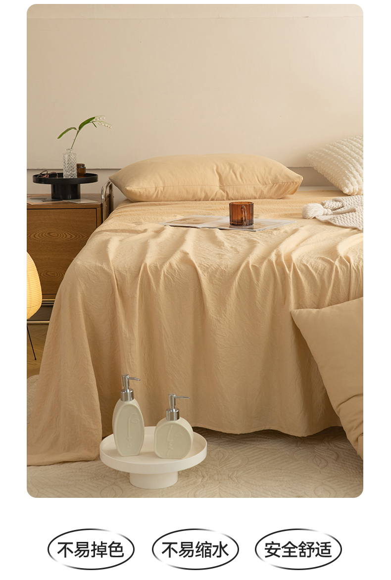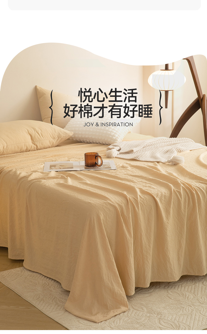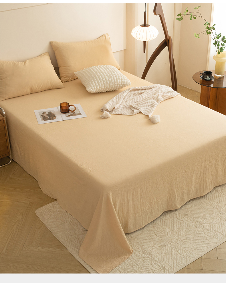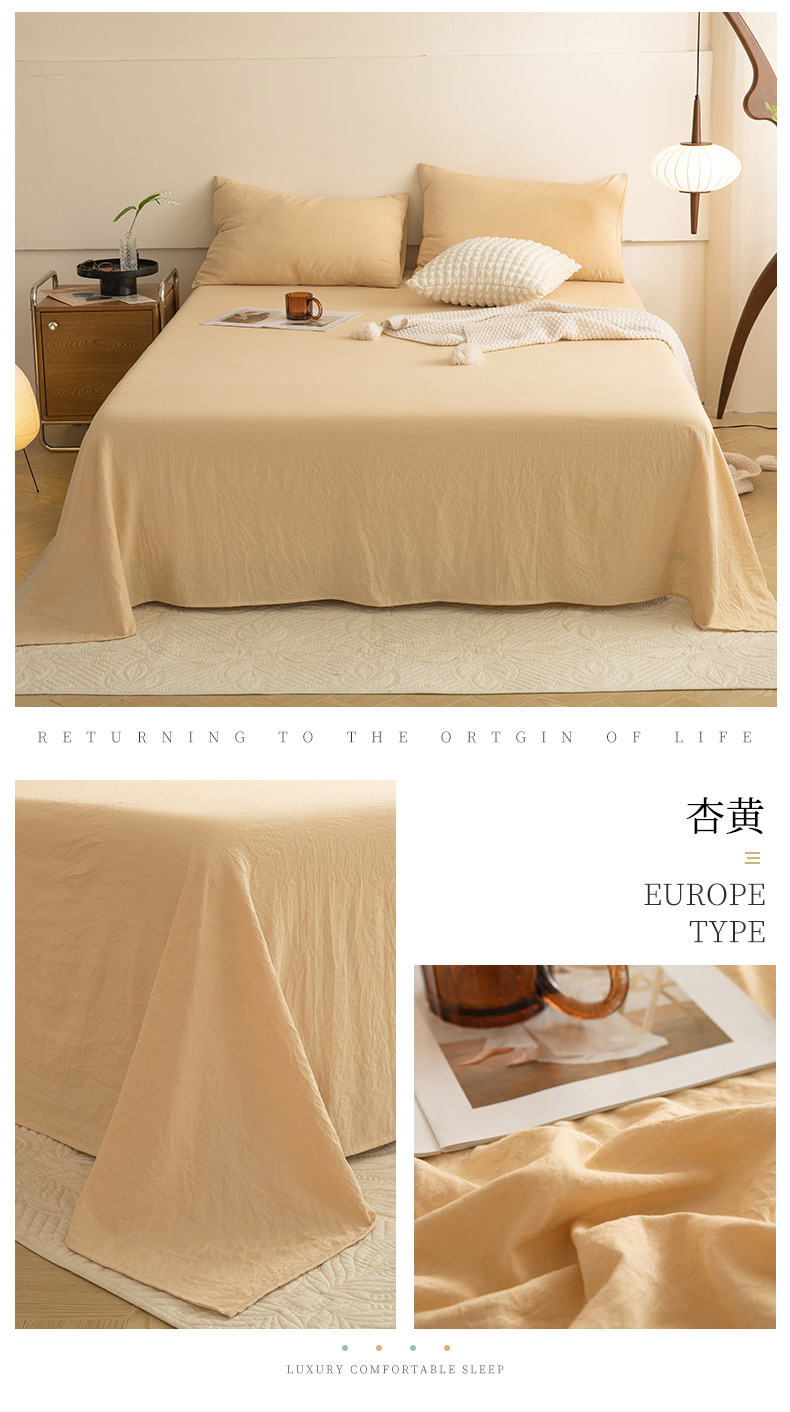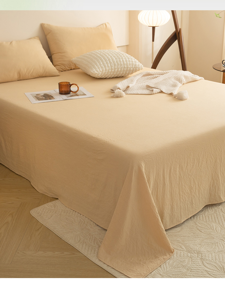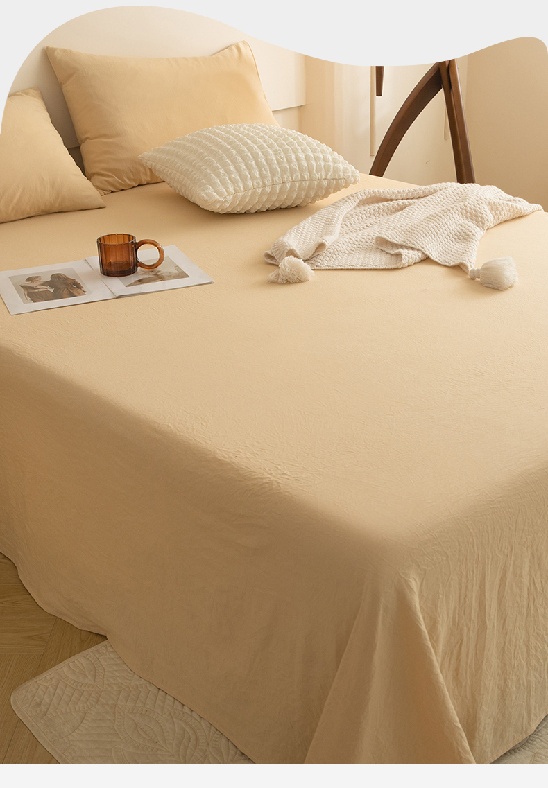多品家纺 2024新款超柔水洗棉单床单 杏黄
