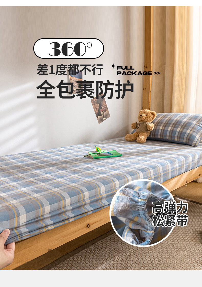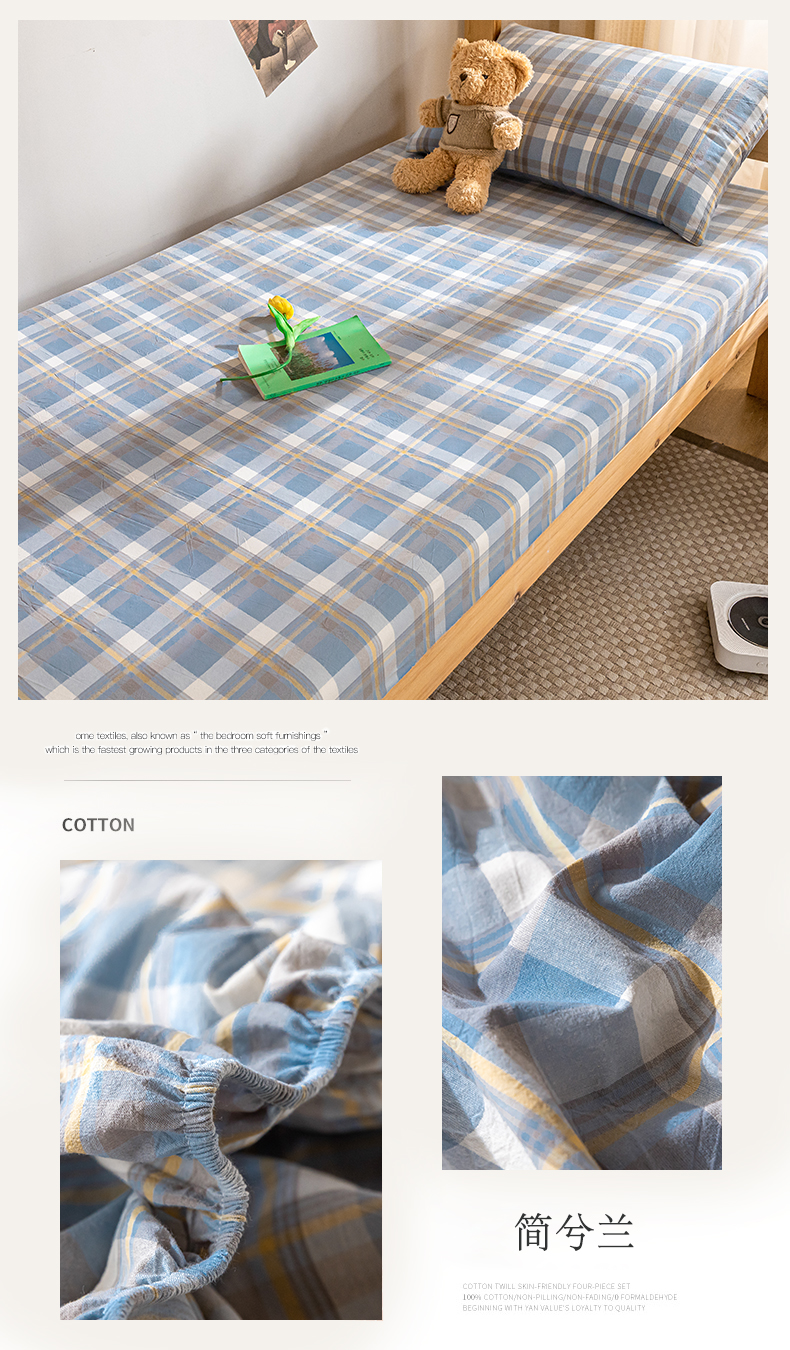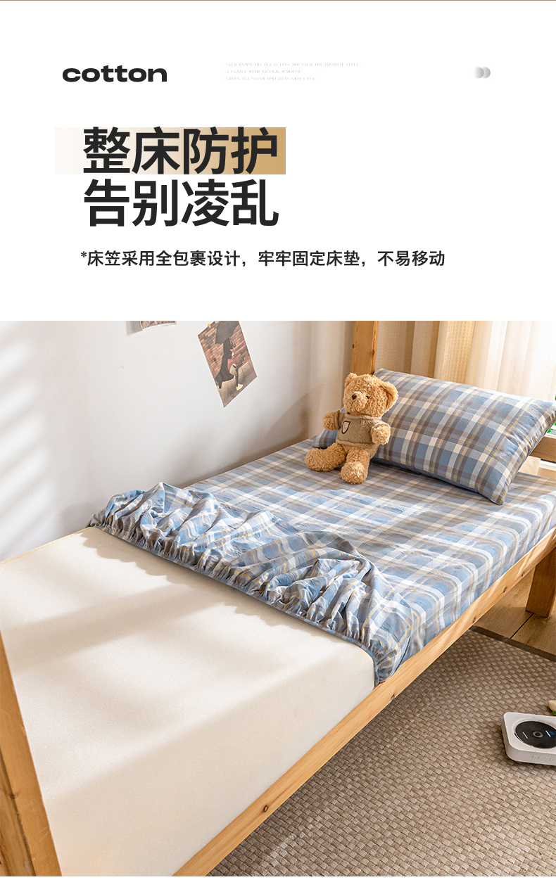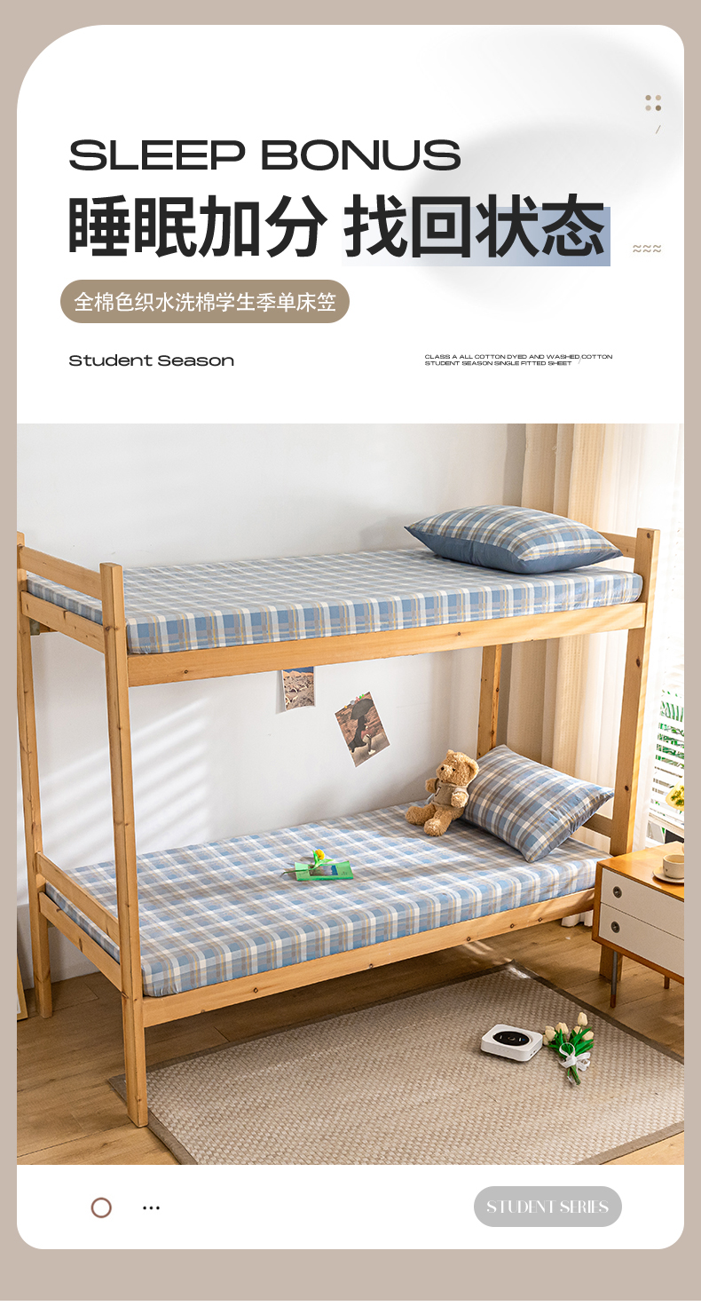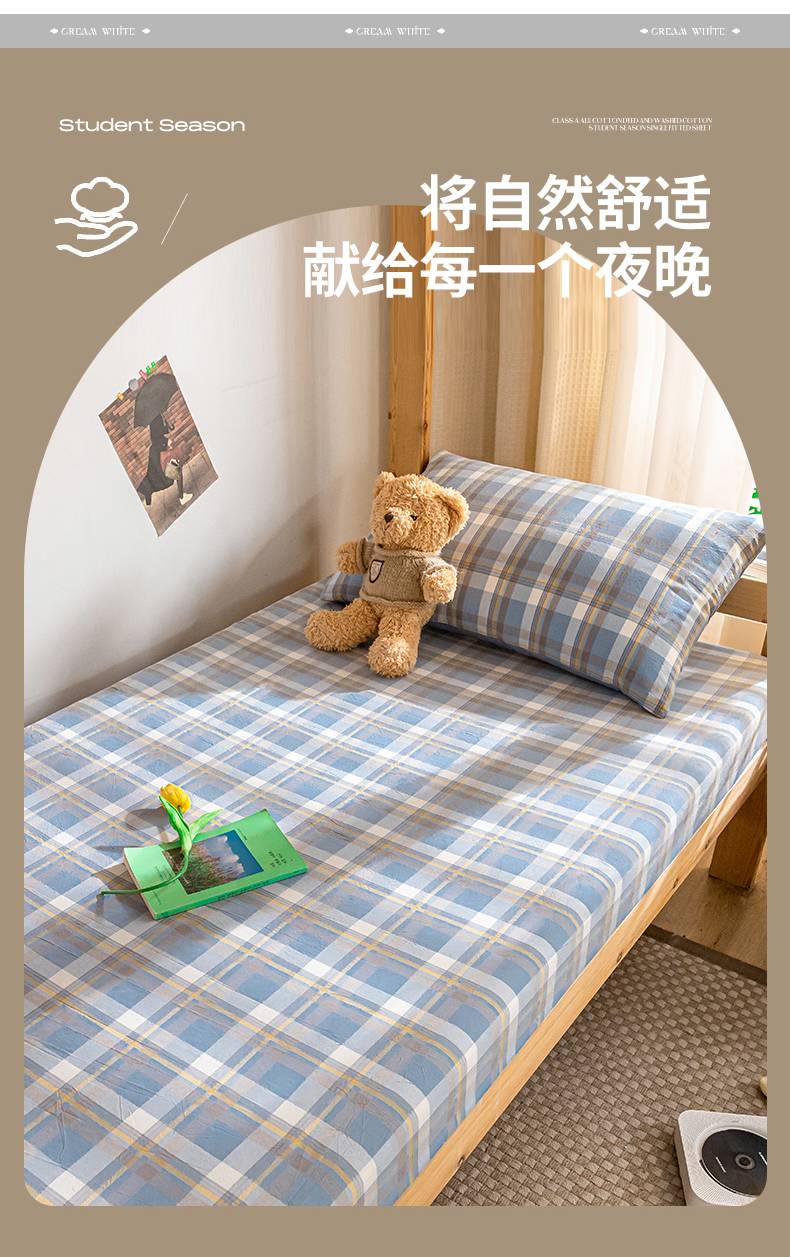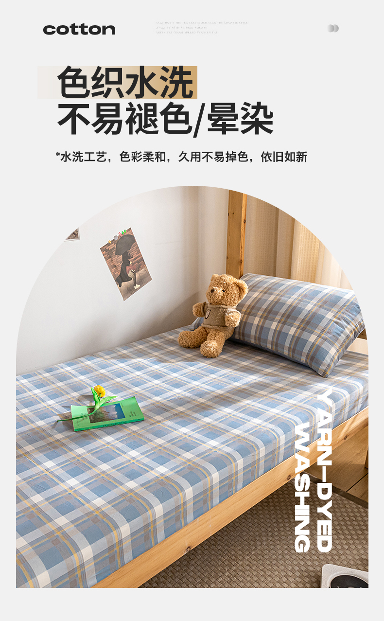 (总)蓝巢家纺 2023新款全棉色织水洗棉学生季单品套件系列二 -单床笠