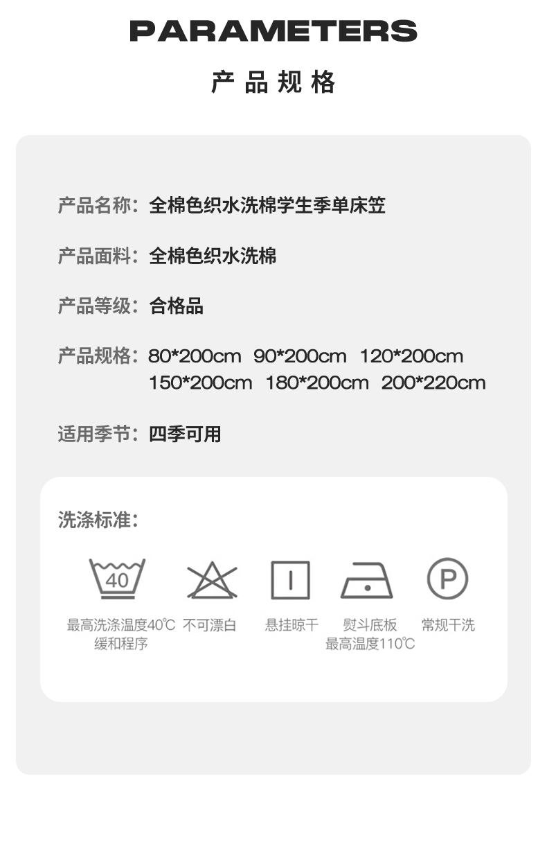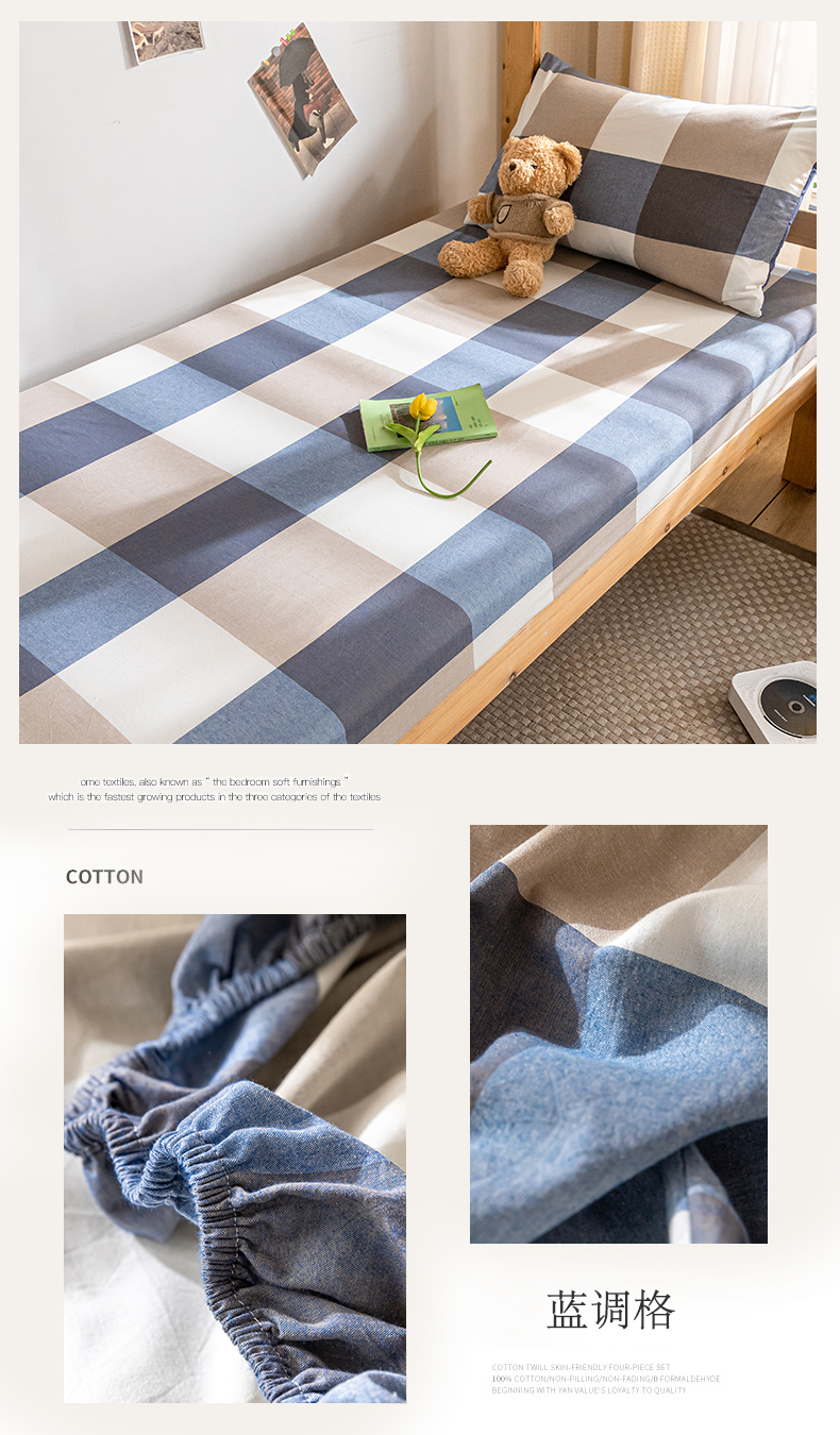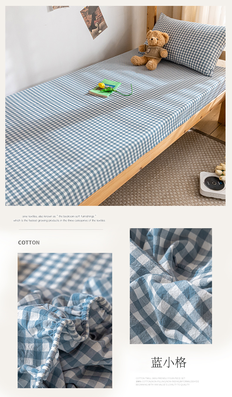 商品名称:(总)蓝巢家纺 2023新款全棉色织水洗棉学生季单品套件系列二 -单床笠