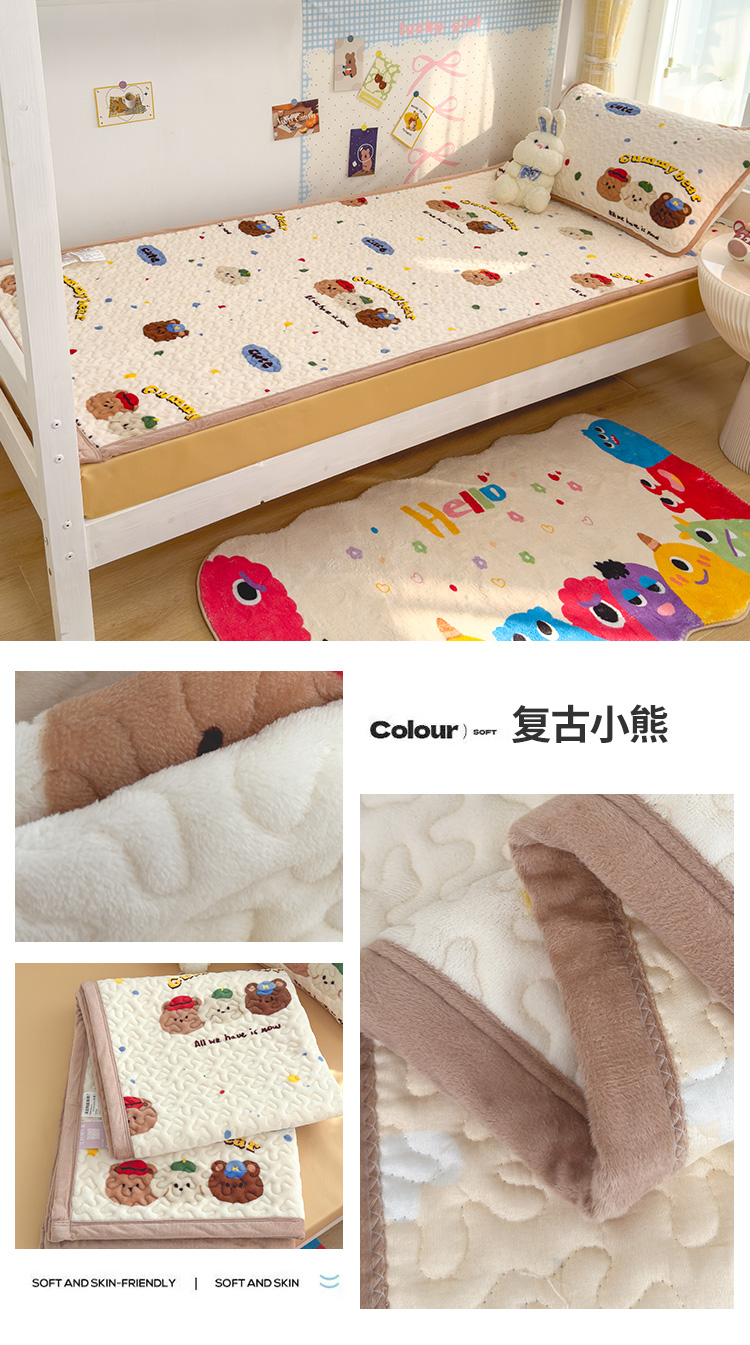 赫梵茜 2024新款90✖200学生牛奶绒床盖复古小熊