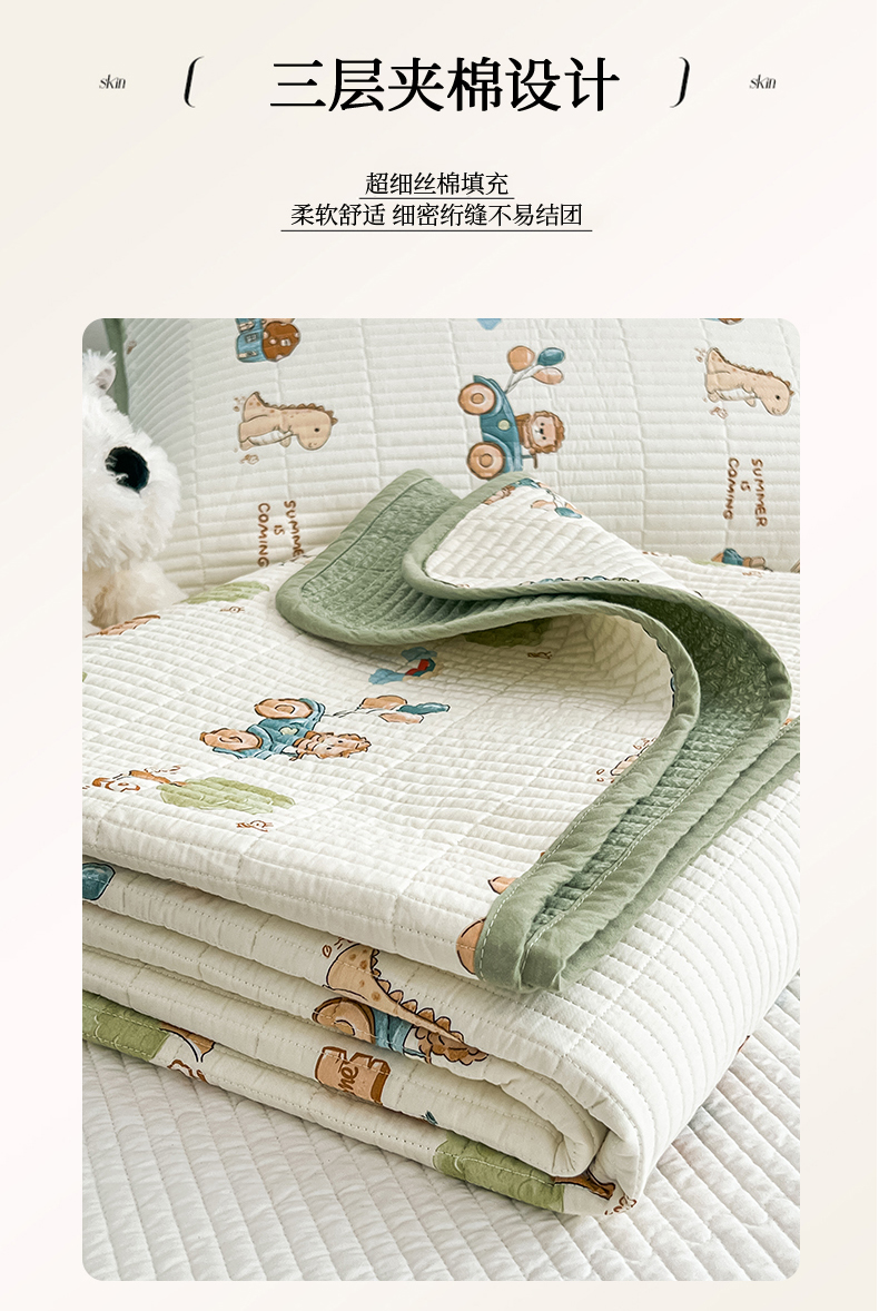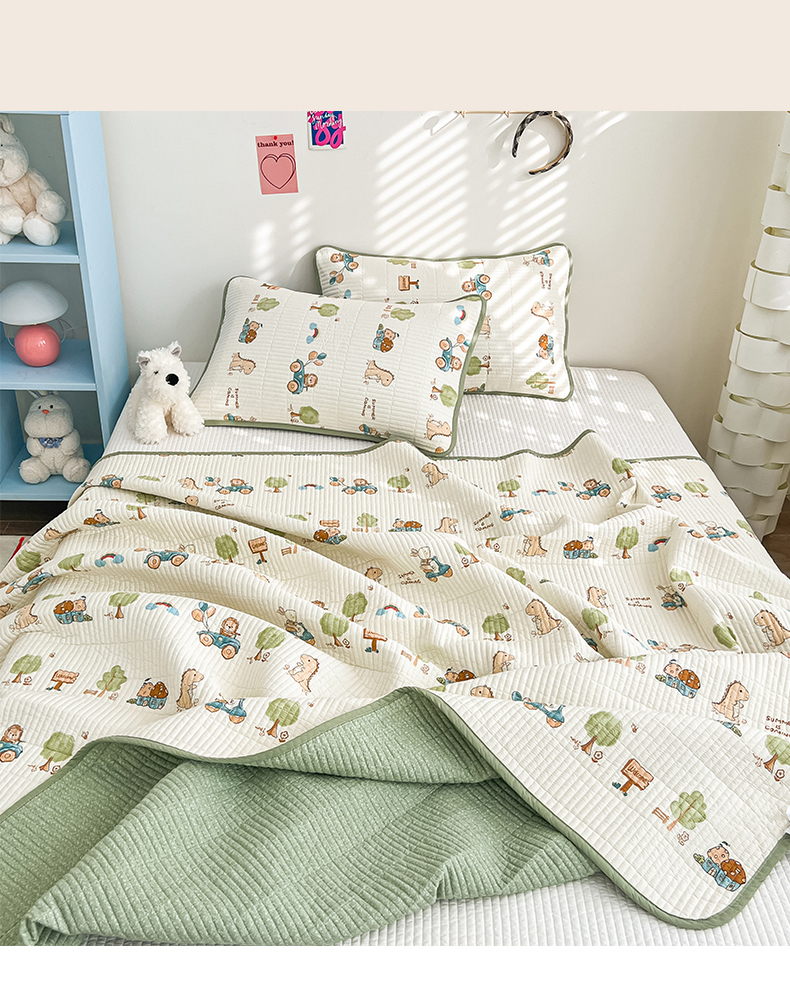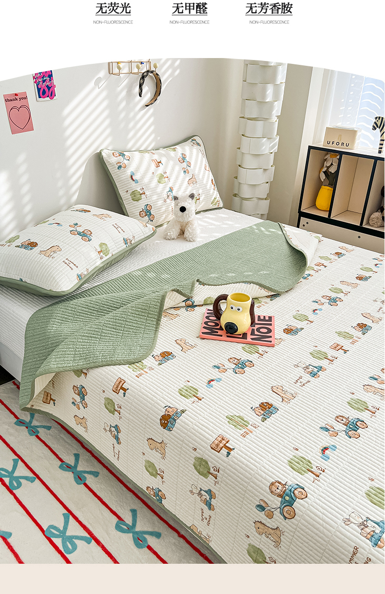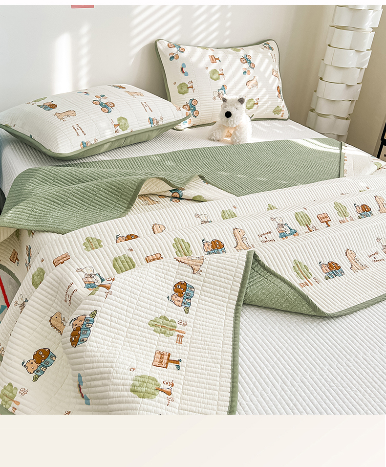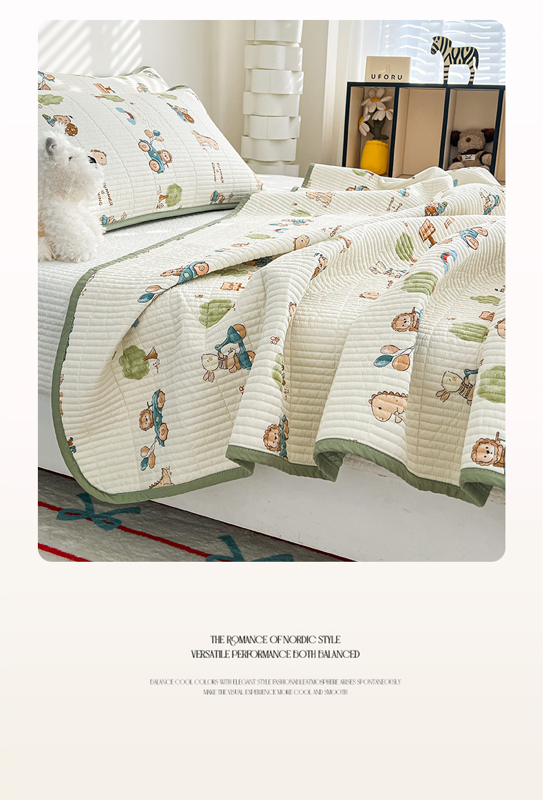 茉夕家纺 2025新款跑量款双面纯棉印花水洗床盖 动物大会