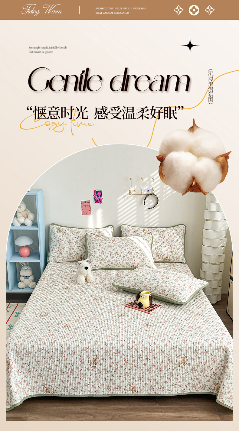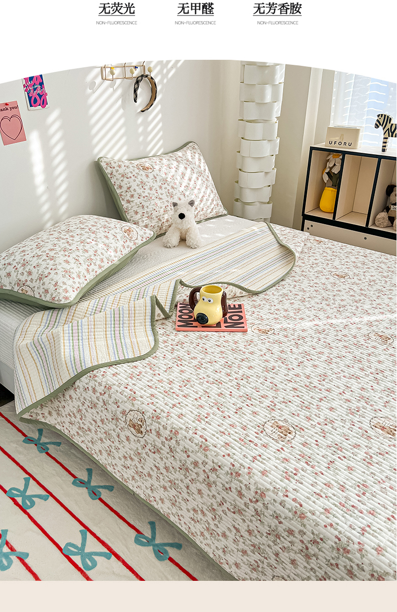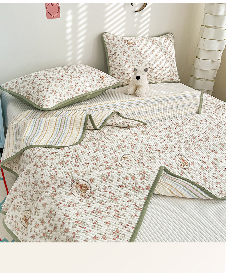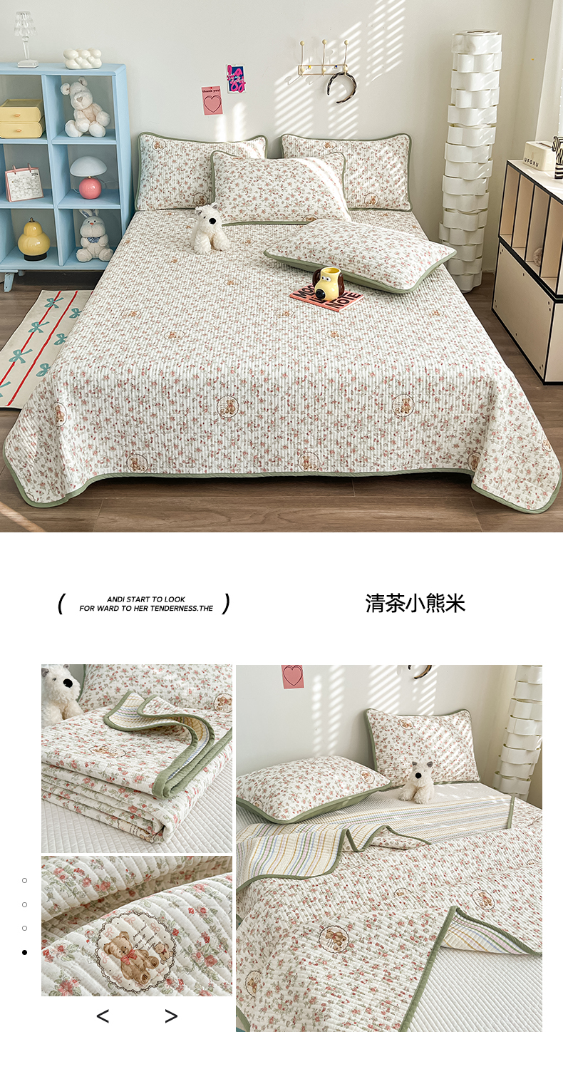 当前位置: 91家纺网 > 商品网购 > 床上用品 > 床盖 > 茉夕家纺 2025新款跑量款双面纯棉印花水洗床盖 清茶小熊米