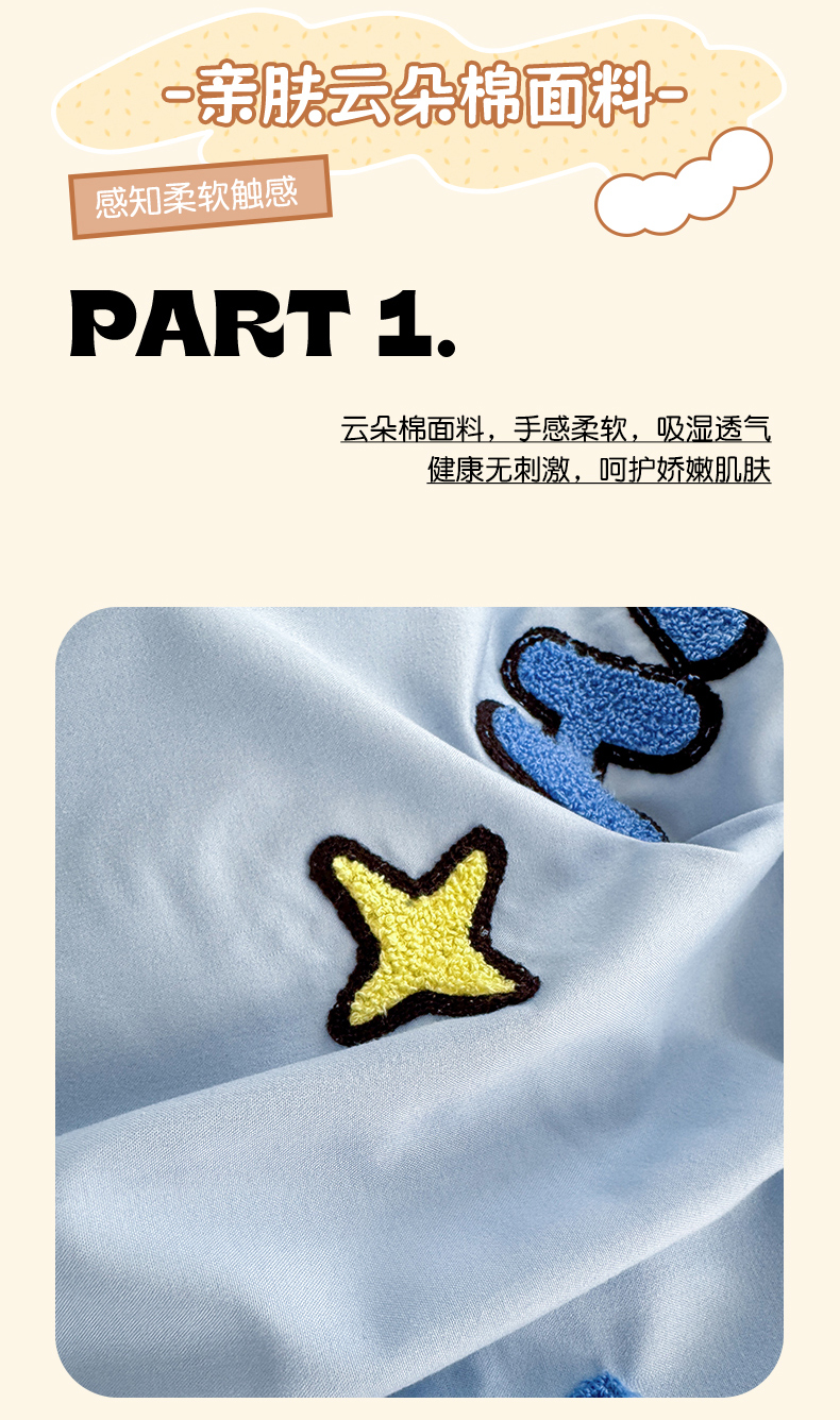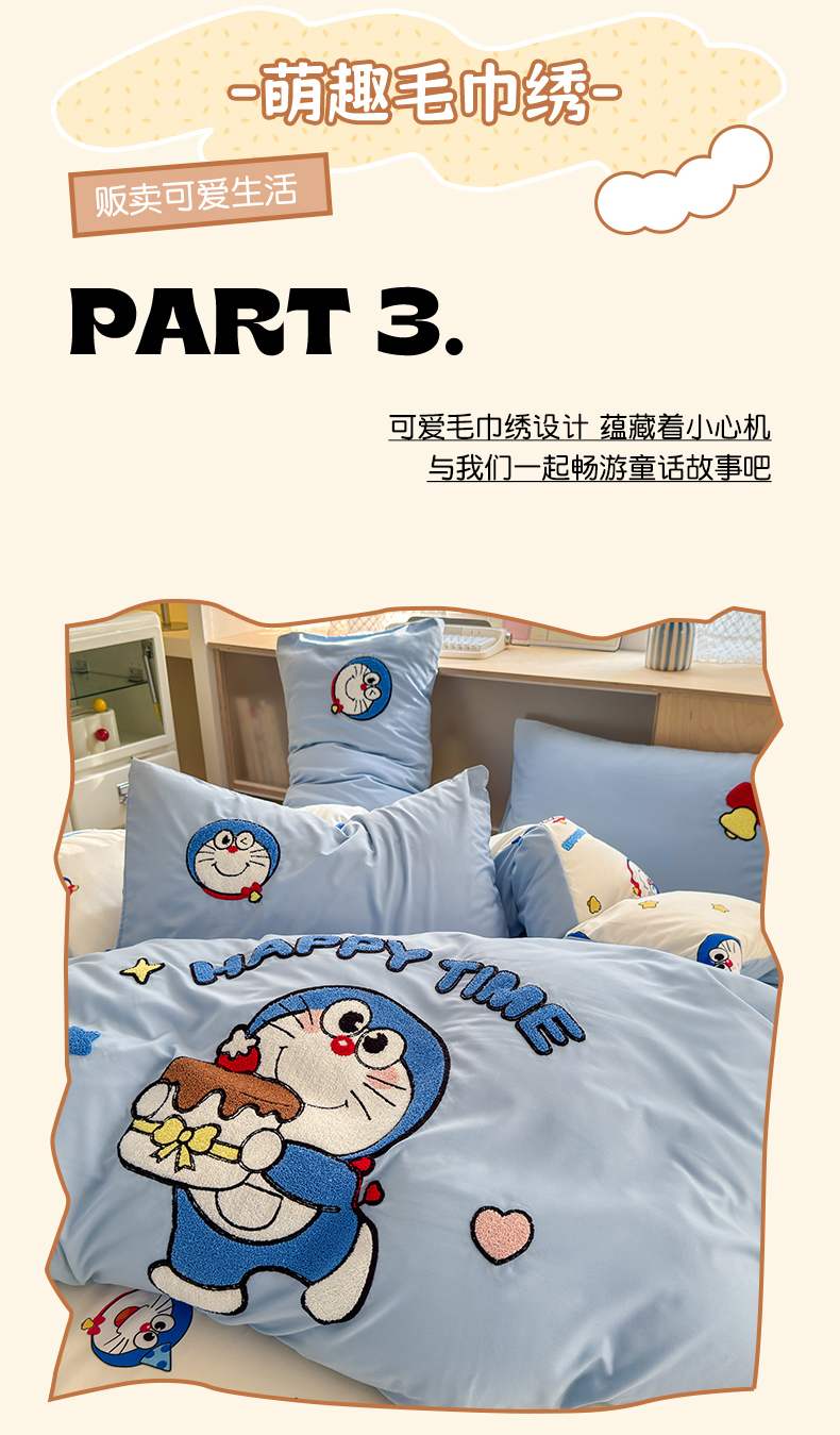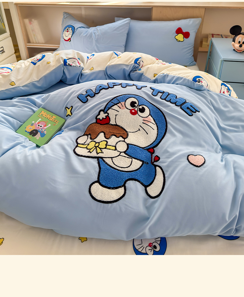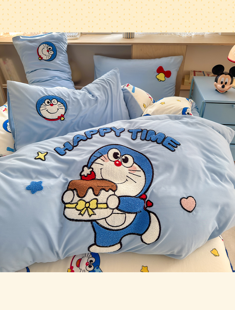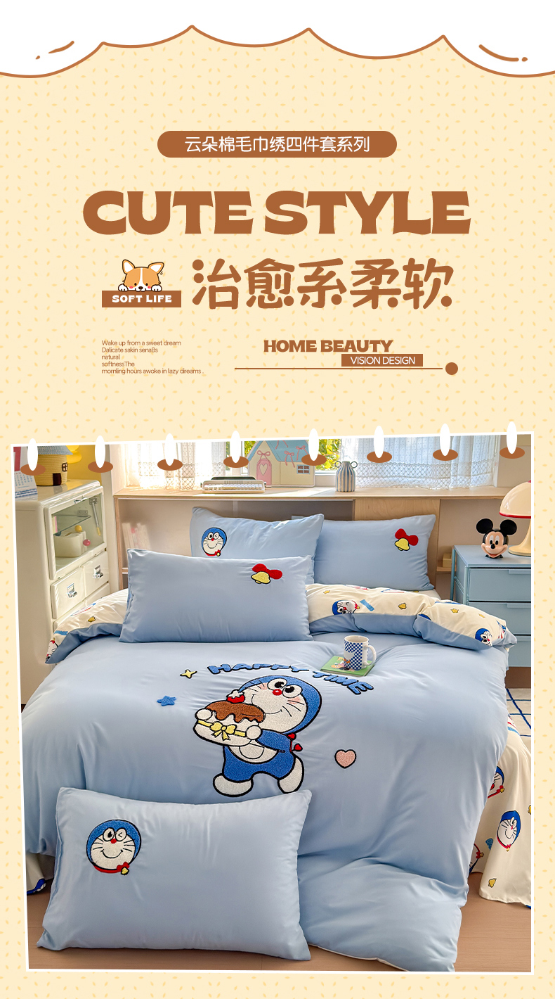 当前位置: 91家纺网 > 商品网购 > 床品套件 > 四件套 > 其它四件套 > 罗亿家纺 2025新款糯糯棉(110克)大版卡通毛巾绣四件套(提供买家绣) 过生日的小蓝