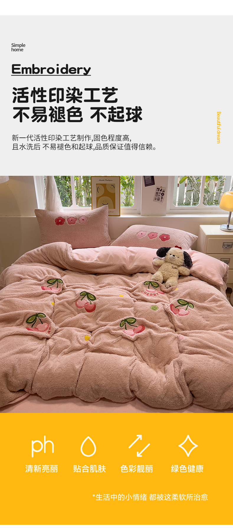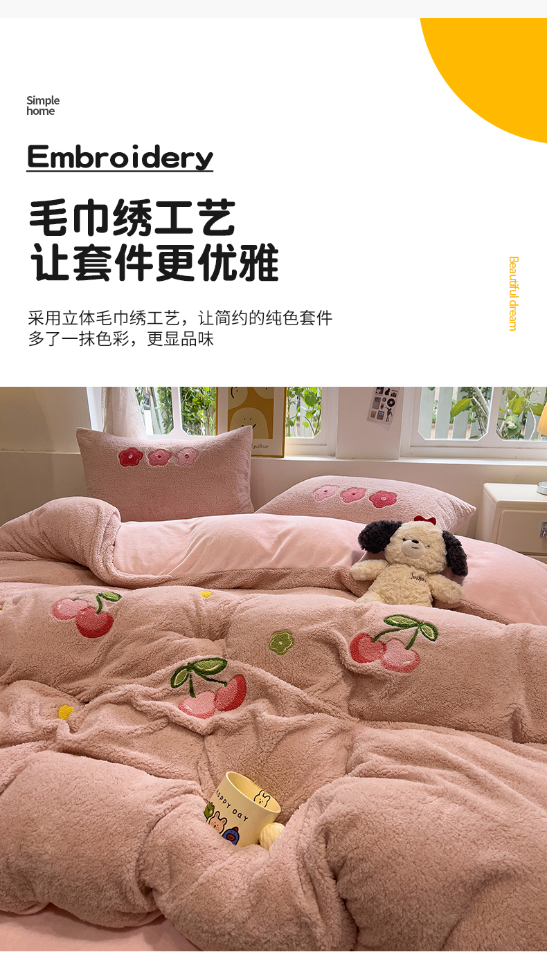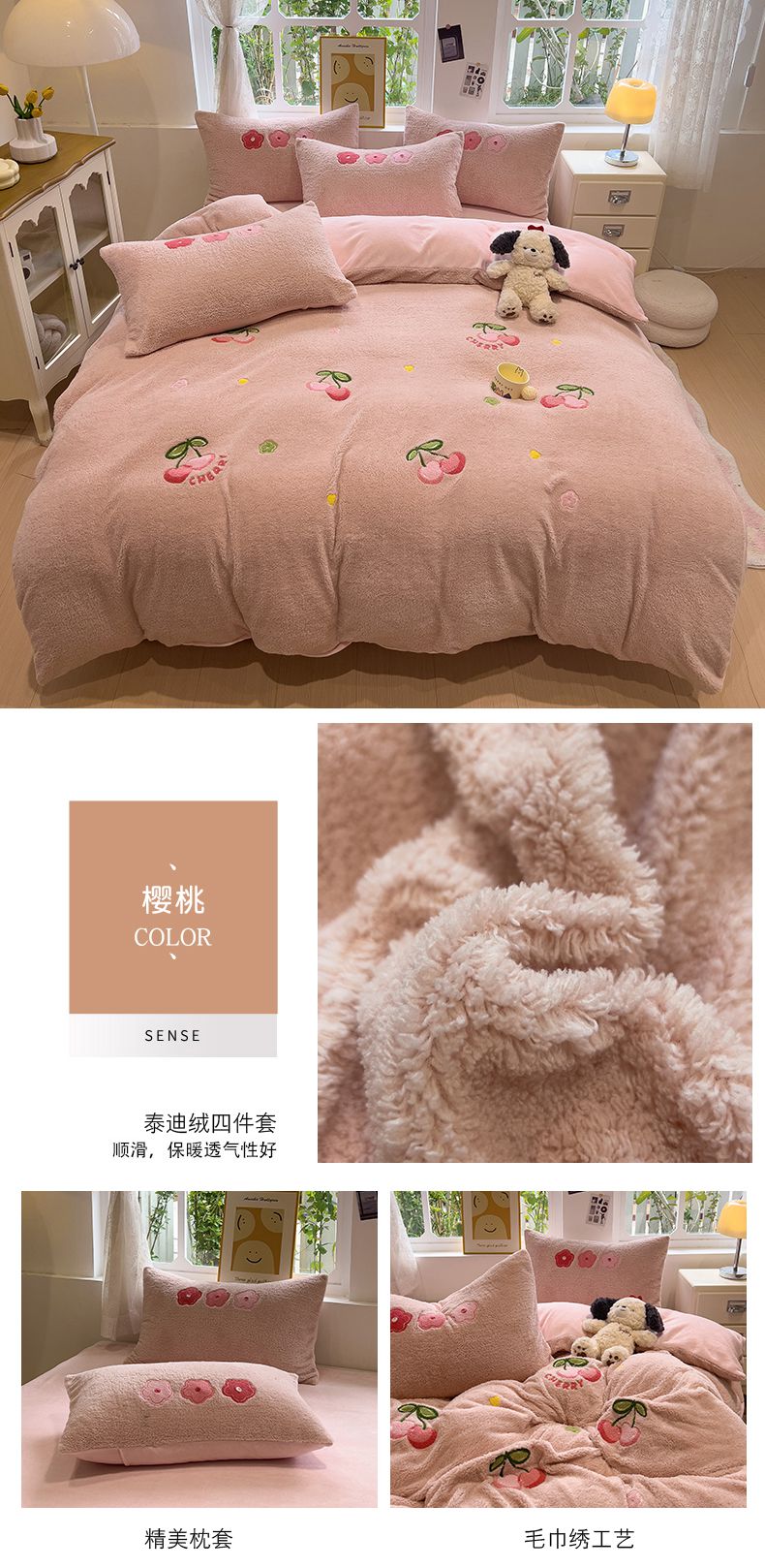 当前位置: 91家纺网 > 商品网购 > 床品套件 > 四件套 > 牛奶绒四件套 > (买家秀 爆款不断货)A类母婴级泰迪绒牛奶绒刺绣四件套珊瑚绒牛奶绒四件套雪花绒四件套刺绣婴儿绒四件套 泰迪绒-樱桃