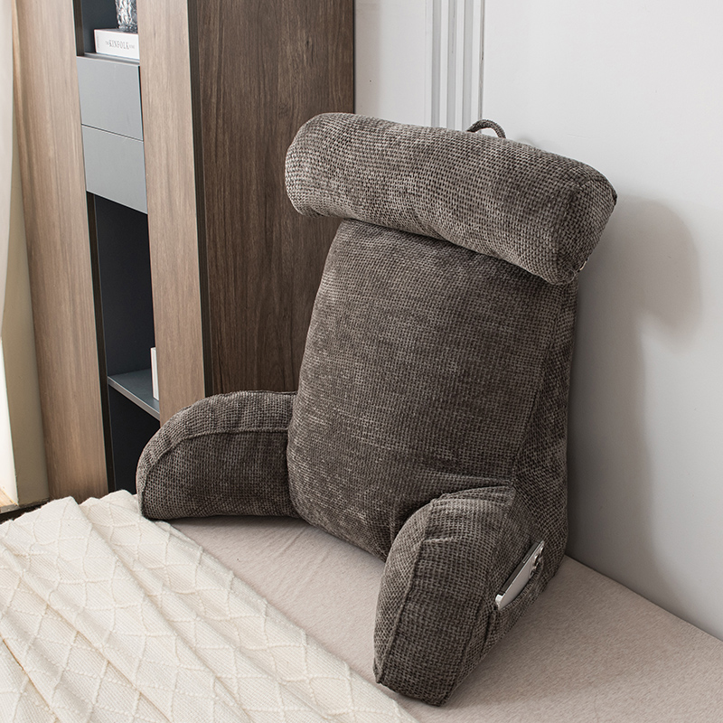 商品名称:一兰家纺 2025新款单人加厚雪芙绒格三角靠垫床上靠枕沙发靠背阅读枕 爱荳-魅影灰