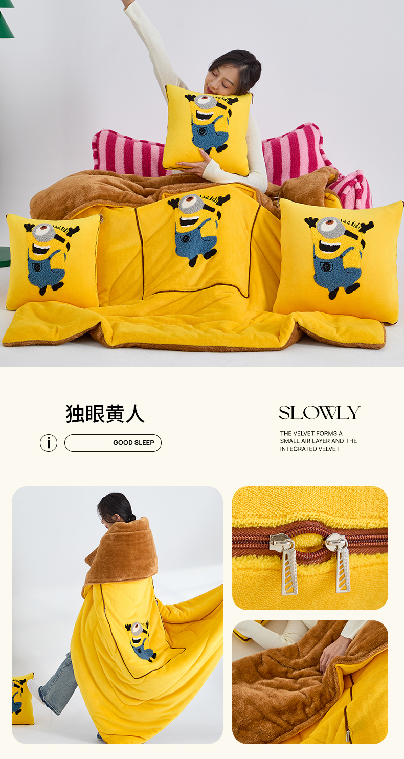 商品名称:宝马家纺(原梦童画) 2025新款小黄人抱枕被加厚抱枕被 独眼黄人