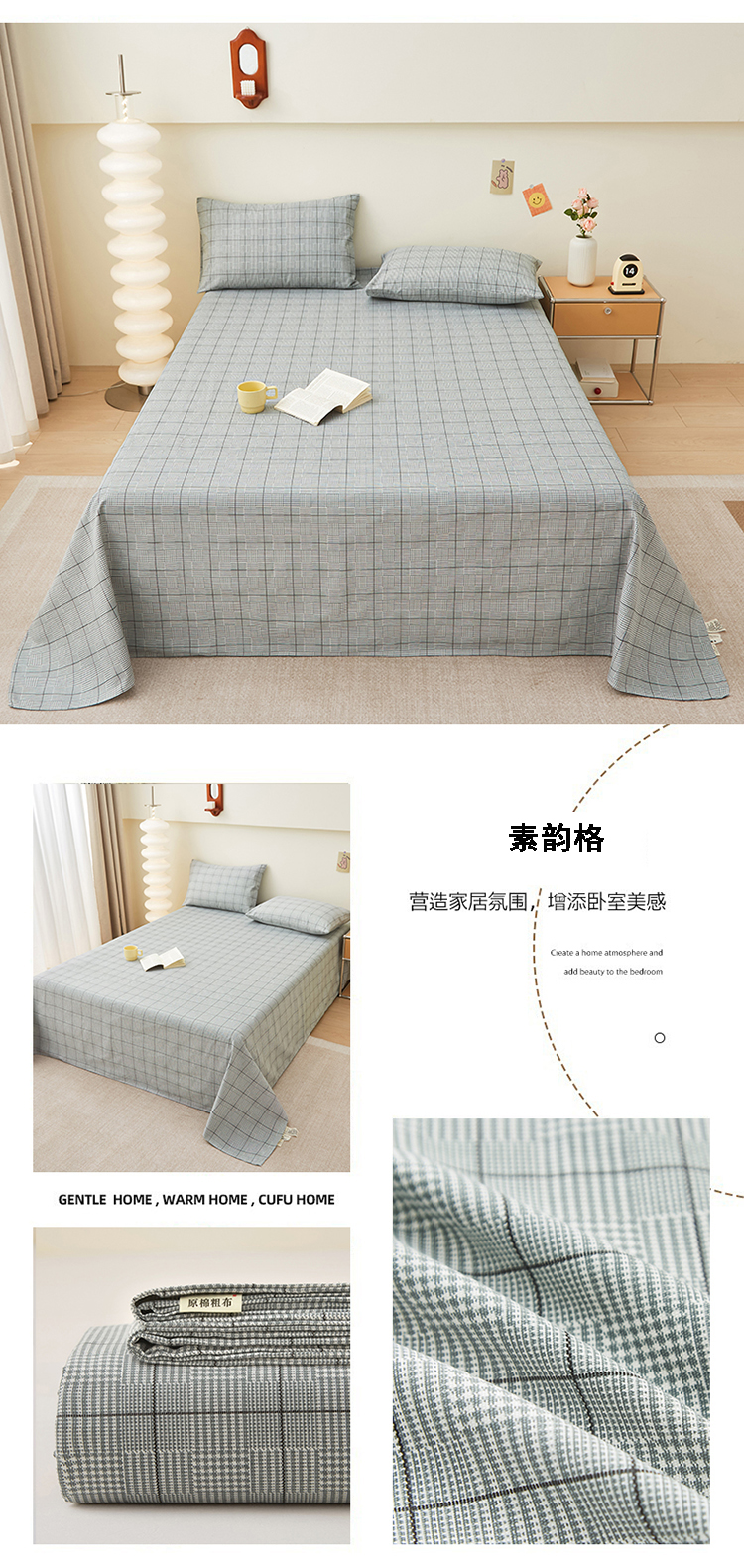 • 91家纺网 家纺一手货源 找家纺 金泰莱 2025新款纯棉全棉粗布床单 素韵格