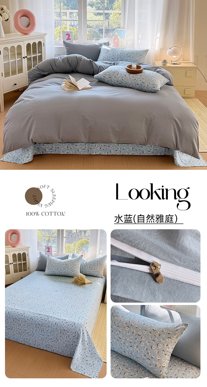 当前位置: 91家纺网 > 商品网购 > 床品套件 > 四件套 > 全棉普通四件套 > 佰亿莱 2025新款简约轻奢全棉双层纱水洗棉四件套 水蓝(自然雅庭)