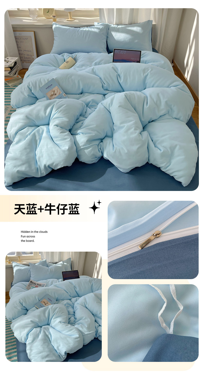 商品名称:芷凡家纺 2025新款亲肤棉纯色双拼四件套 天蓝+牛仔蓝